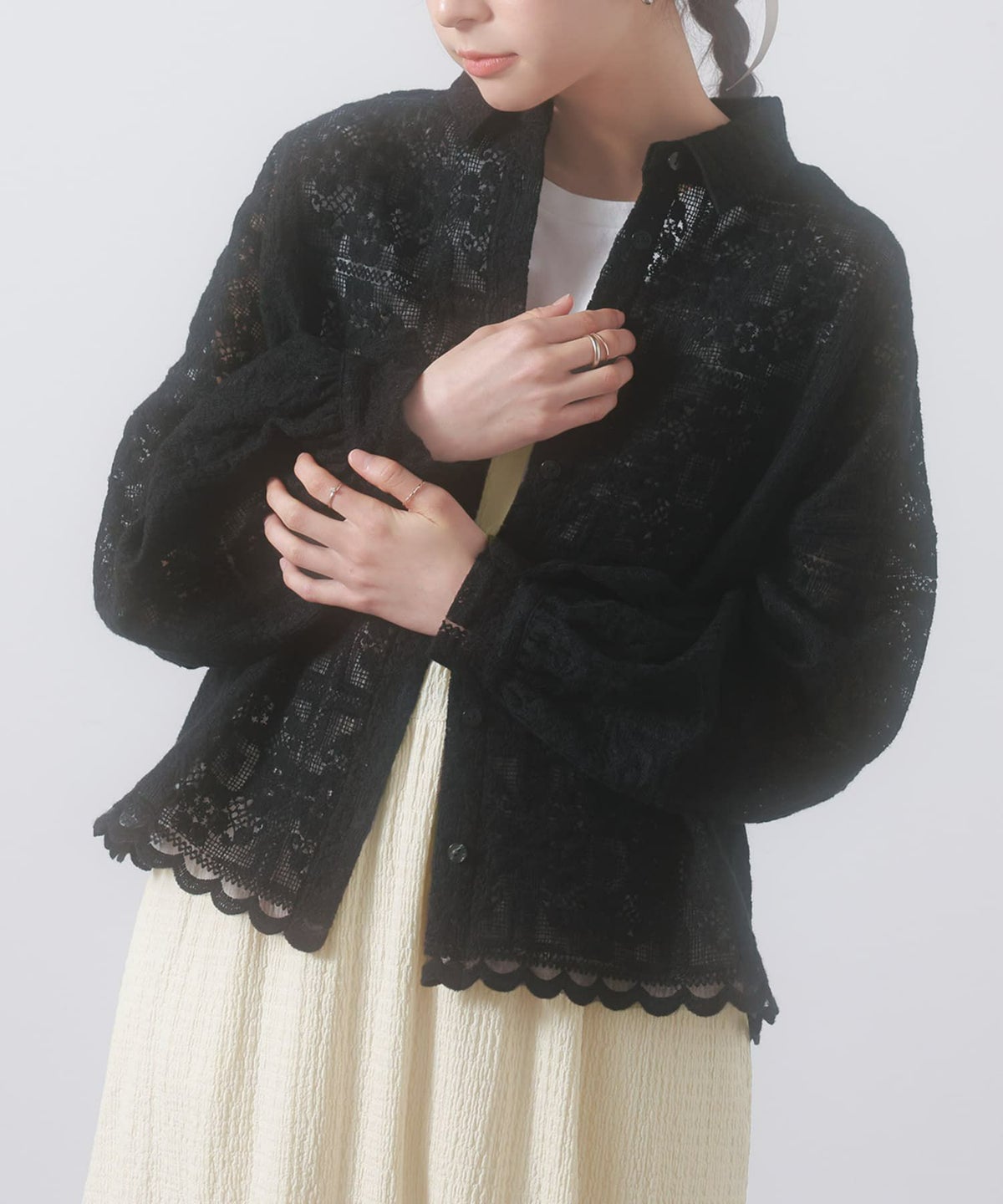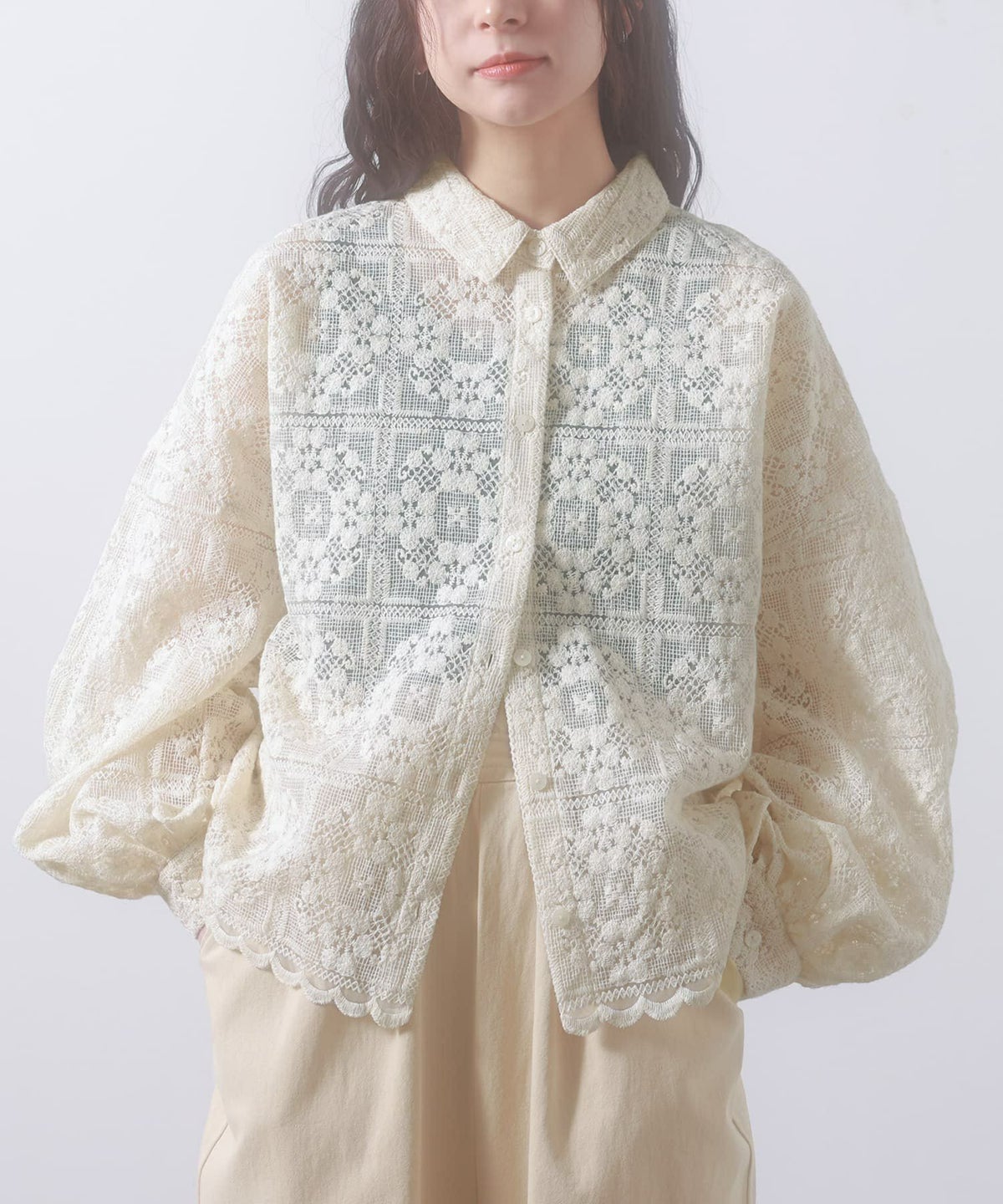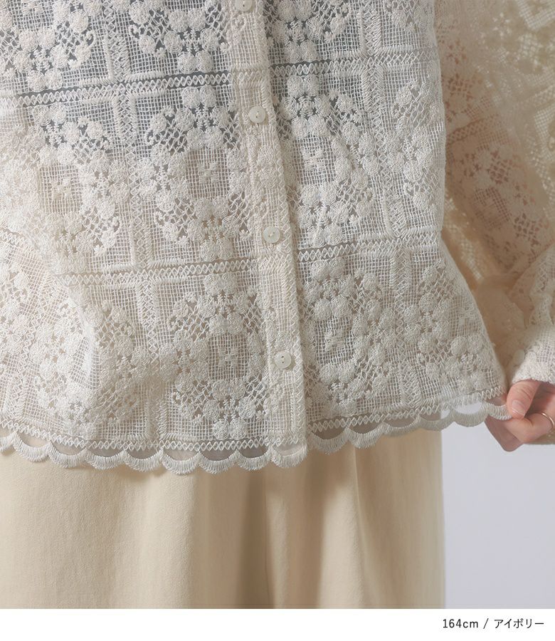 他の画像を見る 【50%OFF】繊細な刺繍柄レース使用したナチュラルブラウス。 『somari imaginationシアーレースブラウス』※返品交換不可※【メール便不可】【20】 定価 ¥ 8,980 のところ ¥ 4,490 税込 4.50 (2)