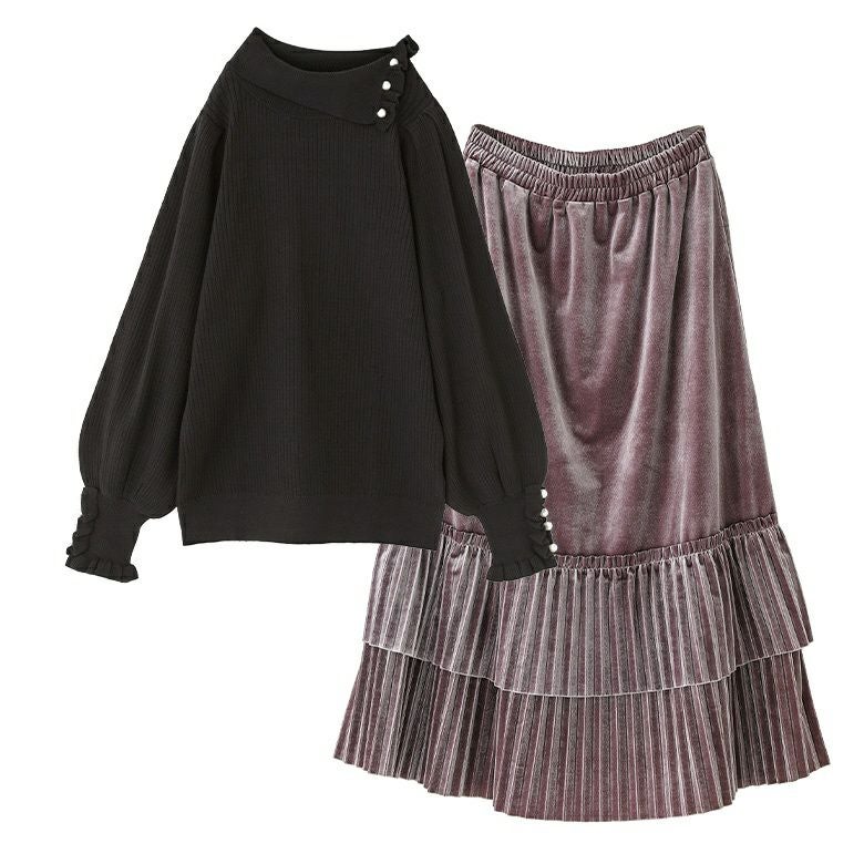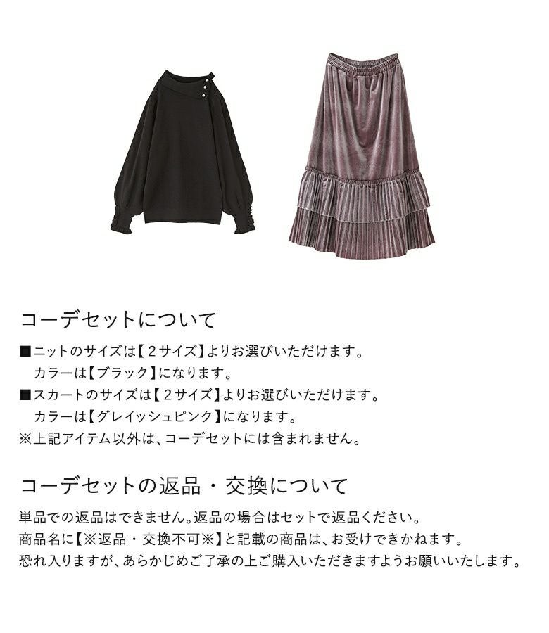 他の画像を見る 送料無料★コーデセット届いてすぐにお洒落に変身2点コーデSET♪ 【送料無料】『フェイクパール付きフリルリブニット×ティアードプリーツベロアスカートコーデ2点SET』【メール便不可】【50】 ¥ 13,960 税込 (0)