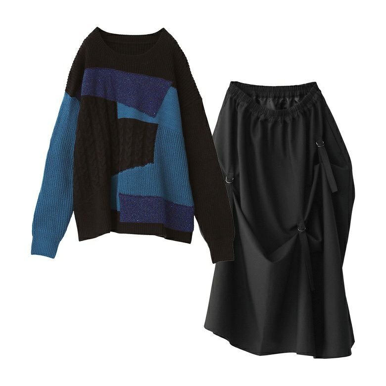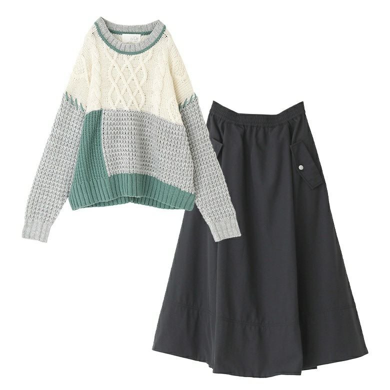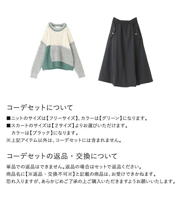 他の画像を見る 送料無料★コーデセット届いてすぐにお洒落に変身2点コーデSET♪ 【送料無料】『配色パッチワークケーブルニット×ナイロン裏フリースフレアスカートコーデ2点SET』【メール便不可】【50】 ¥ 10,960 税込 (0)