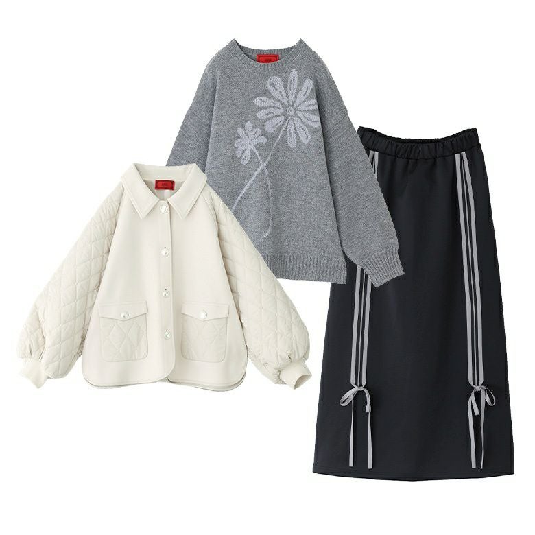 他の画像を見る 送料無料★届いてすぐにお洒落に変身3点コーデSET♪ 【送料無料】『キルティングブルゾン×ジャカードニット×ジャージスカートコーデ3点SET』【メール便不可】【90】 ¥ 22,940 税込 (0)