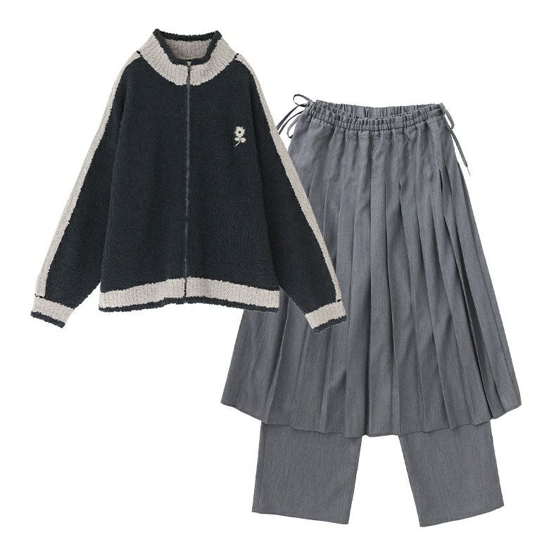 他の画像を見る 送料無料★届いてすぐにお洒落に変身2点コーデSET♪ 【送料無料】『ラインニットブルゾン×プリーツスカート×ストレートパンツセットコーデ2点SET』【メール便不可】【70】 ¥ 17,960 税込 (0)