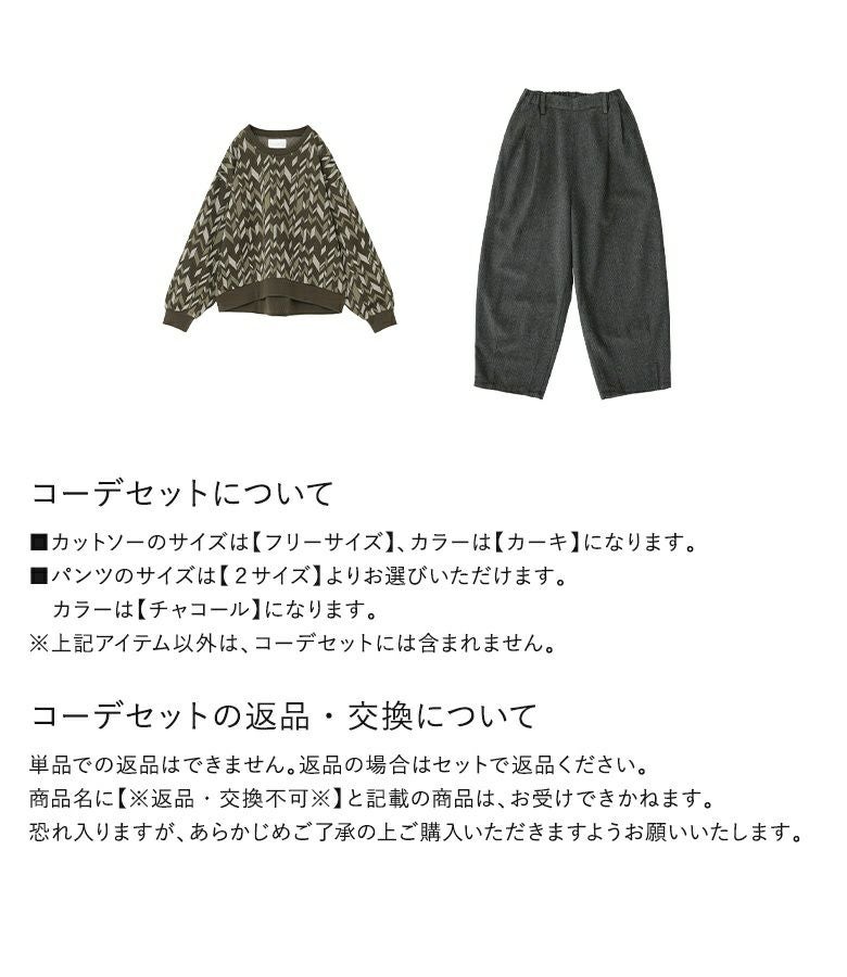 他の画像を見る 送料無料★届いてすぐにお洒落に変身2点コーデSET♪ 【送料無料】『幾何学柄ジャカードカットソー×ツイードバレルタックパンツコーデ2点SET』【メール便不可】【40】 ¥ 8,940 税込 (0)