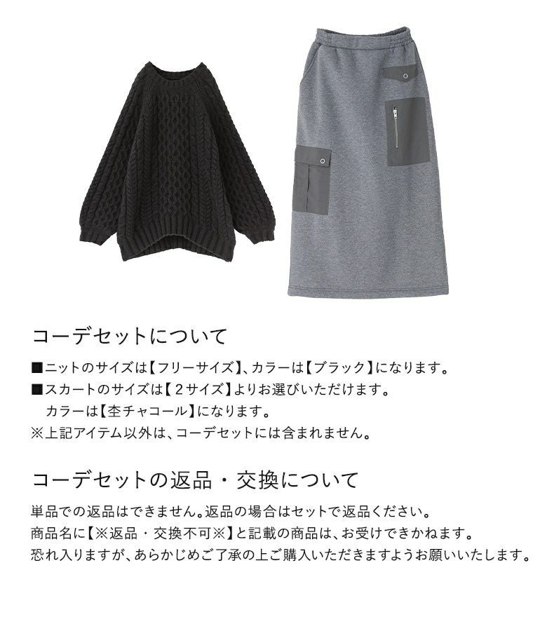 他の画像を見る 送料無料★届いてすぐにお洒落に変身2点コーデSET♪ 【送料無料】『ローゲージケーブルニット×裏起毛ナイロンポケットスカートコーデ2点SET』【メール便不可】【60】 ¥ 9,960 税込 (0)