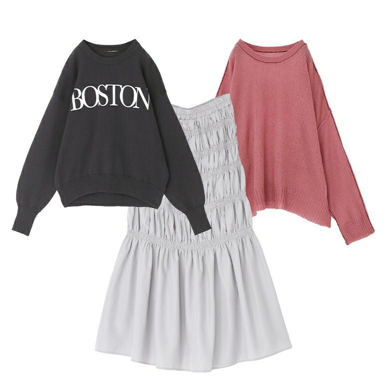 他の画像を見る 送料無料★届いてすぐにお洒落に変身3点コーデSET♪ 【送料無料】『シャーリングデザインスカート×スウェットライクロゴニットプルオーバー×モヘヤタッチシアーニットコーデ3点SET』※返品交換不可※【メール便不可】【50】 ¥ 13,920 税込 (0)