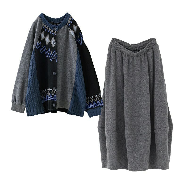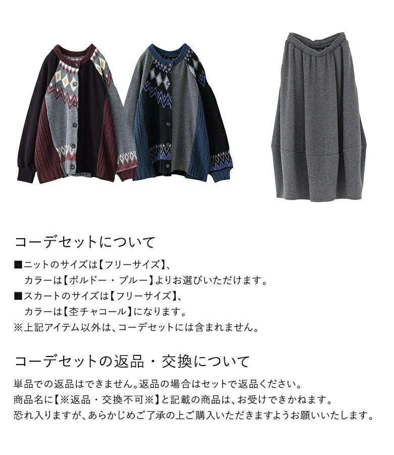 他の画像を見る 送料無料★届いてすぐにお洒落に変身2点コーデSET♪ 【送料無料】『裏シャギーパッチワークノルディックニットカーデ×裏シャギーコクーンスカートコーデ2点SET』【メール便不可】【60】 ¥ 10,560 税込 (0)