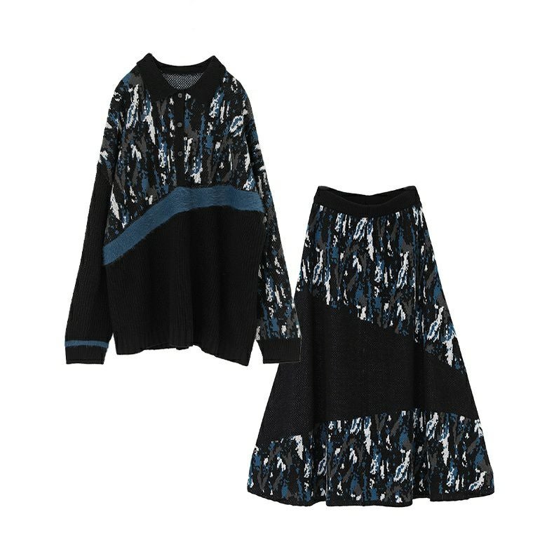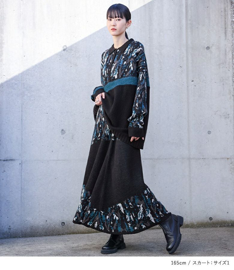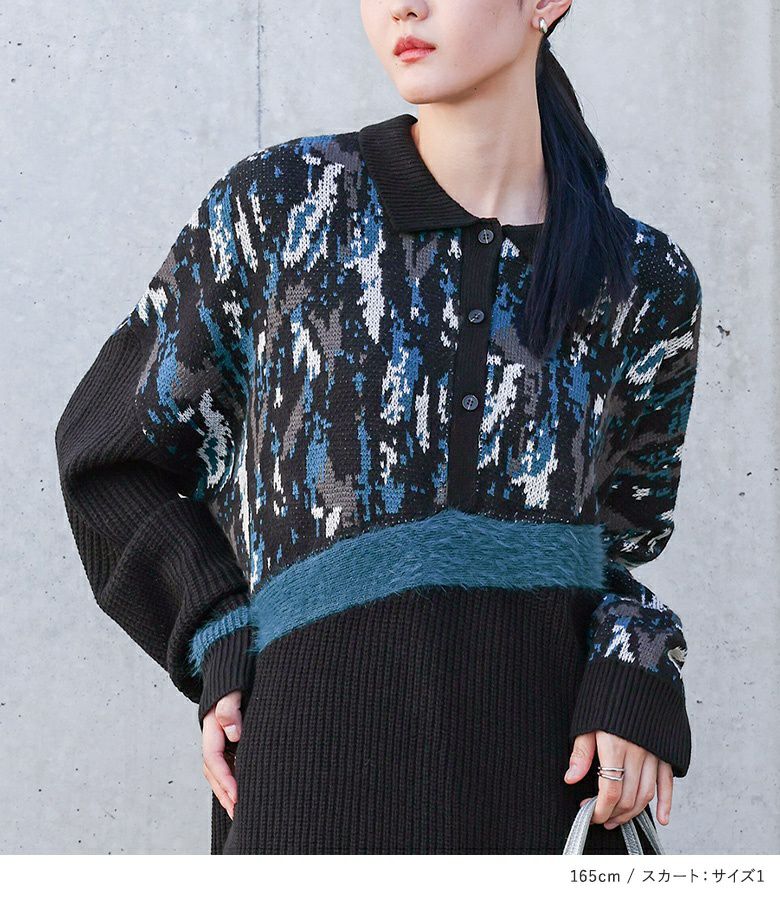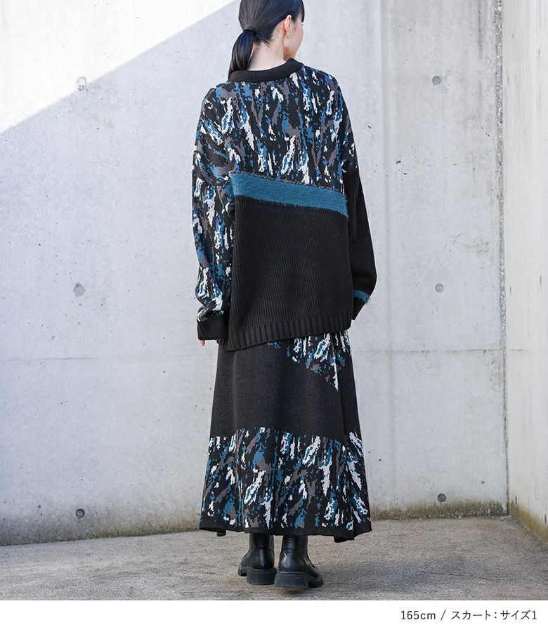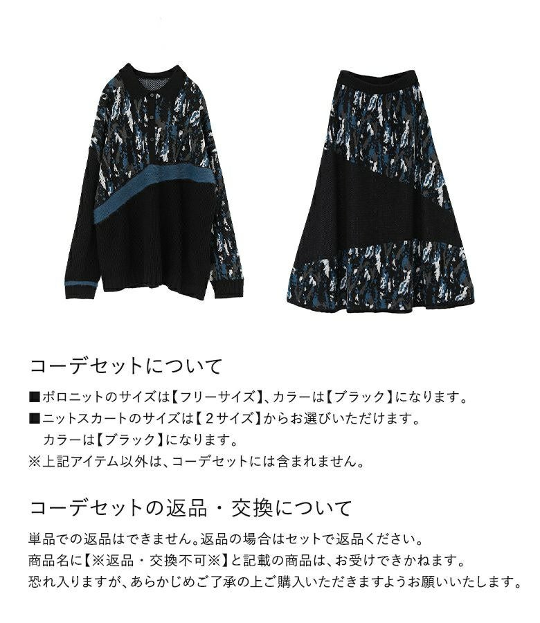 他の画像を見る 送料無料★届いてすぐにお洒落に変身2点コーデSET♪ 【送料無料】『アート柄切替ポロニット×アート柄切替ニットスカートコーデ2点SET』【メール便不可】【60】 ¥ 13,960 税込 (0)