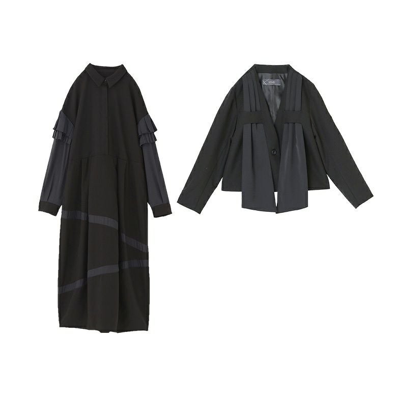 他の画像を見る 送料無料★届いてすぐにお洒落に変身2点コーデSET♪ 【送料無料】『配色ラインコクーンワンピース×異素材ドッキングノーカラージャケットコーデ2点SET』【メール便不可】【60】 ¥ 17,960 税込 (0)