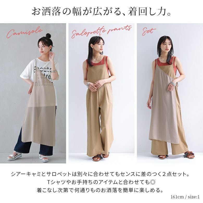 他の画像を見る 【50%OFF】お洒落の幅が広がるレイヤード2点セット♪ 『n'OrLABELシアーキャミ×ワイドサロペットセット』※返品交換不可※【メール便不可】 定価 ¥ 7,900 のところ ¥ 3,950 税込 4.38 (8)