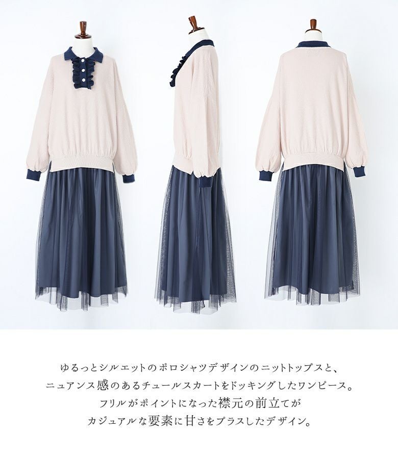 他の画像を見る カジュアルな要素に甘さをプラス♪ドッキングワンピース。 【送料無料】『somari imaginationニットポロドッキングワンピース』【メール便不可】【30】 ¥ 9,980 税込 3.80 (5)