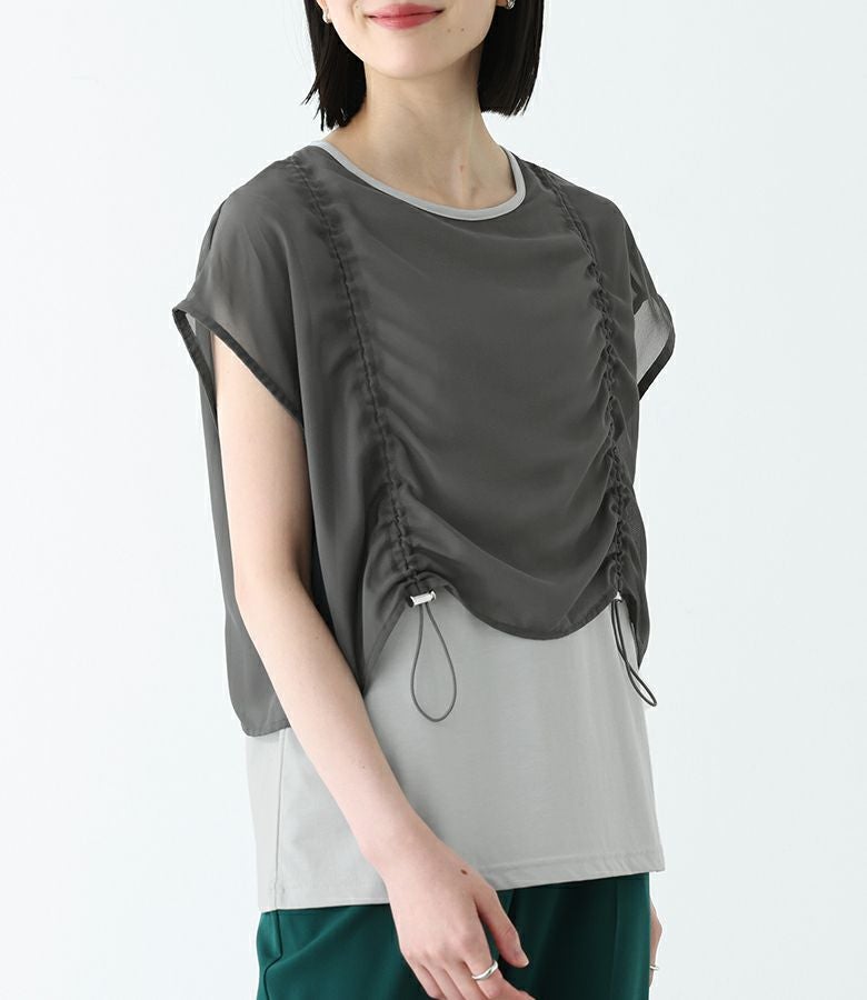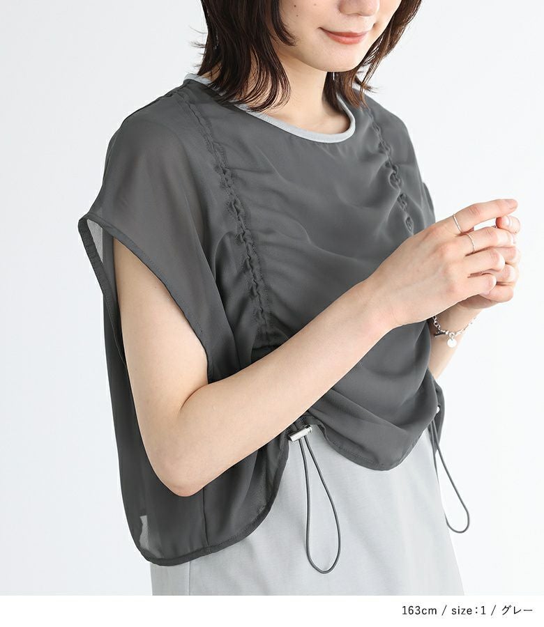 他の画像を見る 【40%OFF】選べるM~3Lサイズ展開!シルエットをアレンジできるノースリーブ。 『ドロスト異素材ノースリーブトップス』※返品交換不可※※メール便可※【5】 定価 ¥ 4,980 のところ ¥ 2,987 税込 (0)