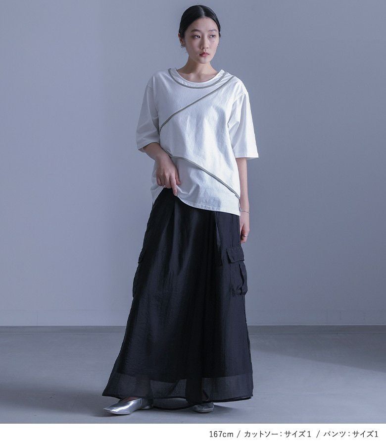 他の画像を見る 送料無料★届いてすぐにお洒落に変身2点コーデSET♪ 【送料無料】『パイピングカットソー×シアーワイドカーゴパンツコーデ2点SET』【メール便不可】【20】 ¥ 11,570 税込 (0)