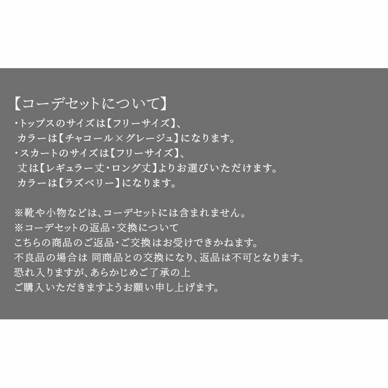 他の画像を見る コーデセット届いてすぐにお洒落に変身2点コーデSET♪ 『配色ライン5分袖リブニット×クラッシュベロアセミフレアスカートコーデ2点SET』※返品・交換不可※【メール便不可】【30】 ¥ 6,950 税込 (0)