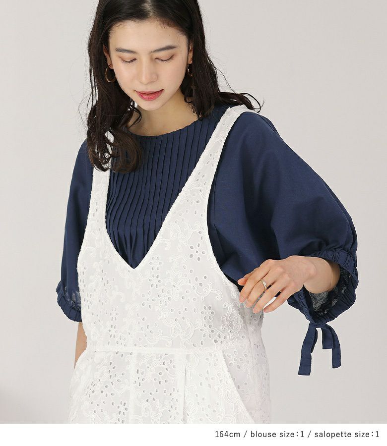 他の画像を見る 送料無料★届いてすぐにお洒落に変身2点コーデSET♪ 【送料無料】『ピンタックリネンブラウス×コットンレースサロペットコーデ2点SET』【メール便不可】【40】 ¥ 15,880 税込 (0)