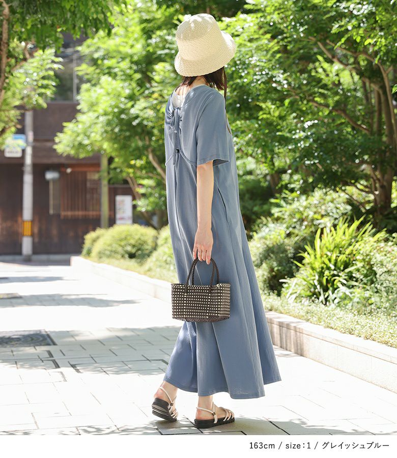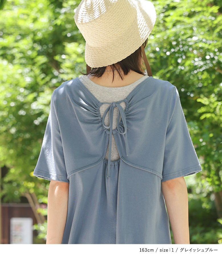他の画像を見る 選べるM~3Lサイズ展開!バックの程良い開きデザインがポイントになった半袖ワンピース。 『n'OrLABELバックリボンワンピース』【メール便不可】【20】 ¥ 4,980 税込 3.50 (2)
