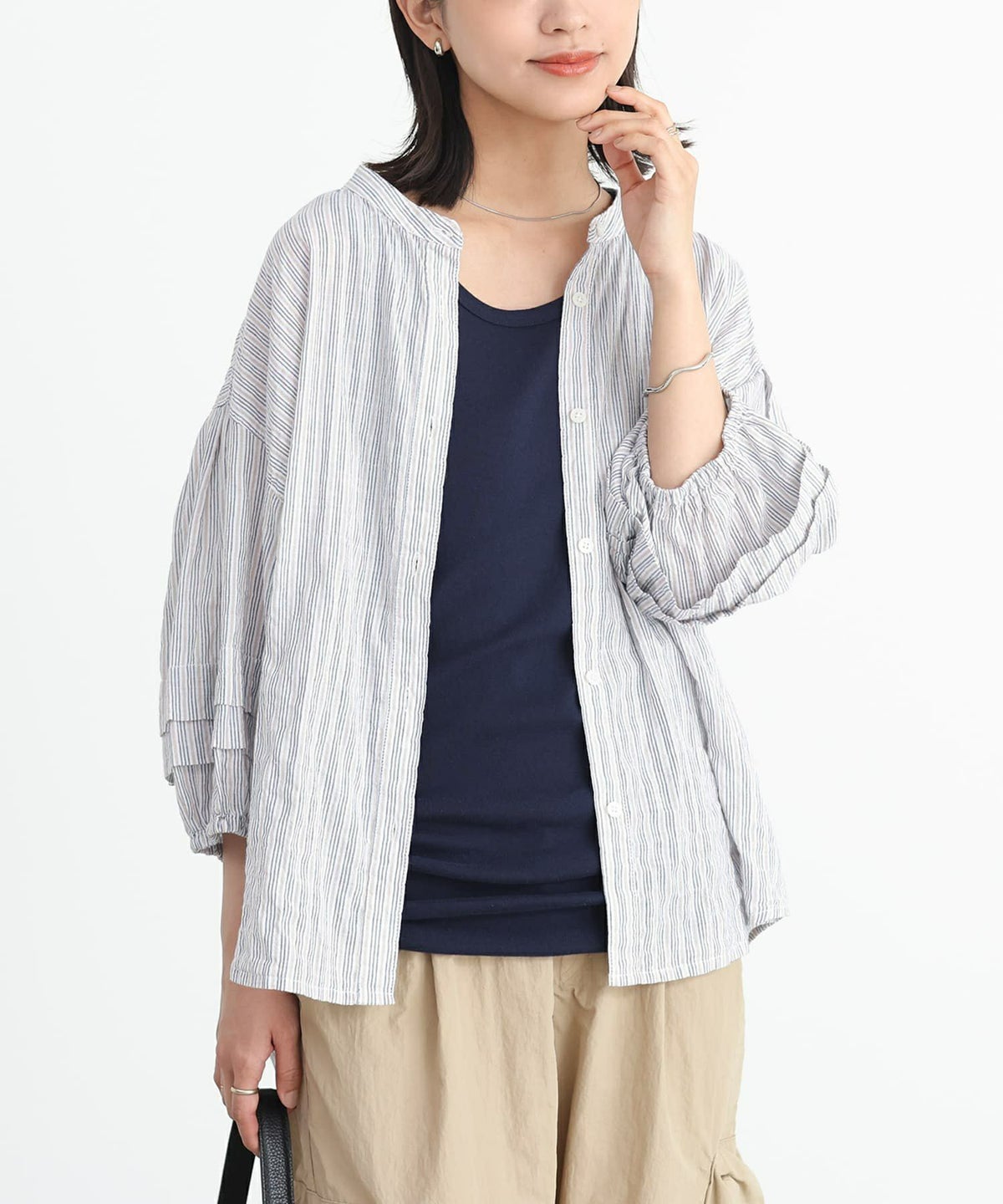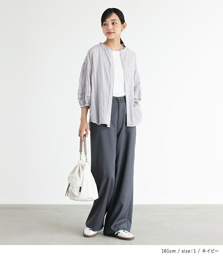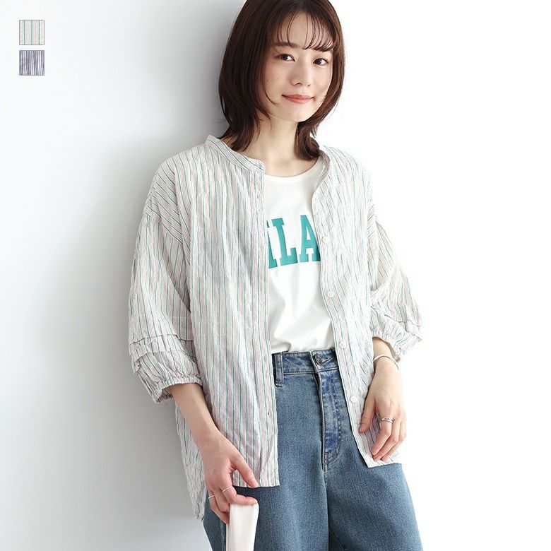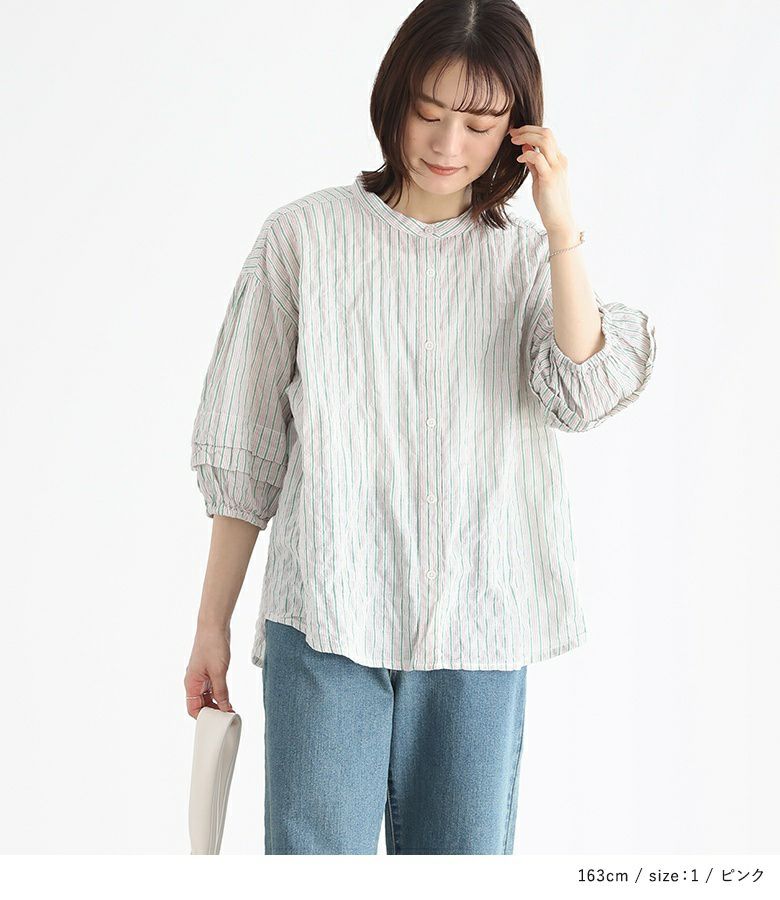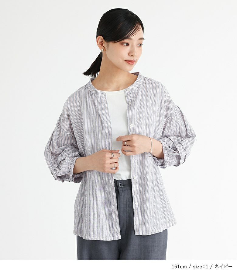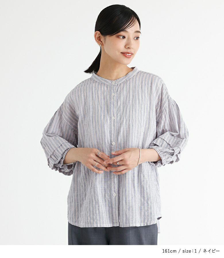 他の画像を見る 【30%OFF】選べるM~3Lサイズ展開!肌なじみのいいコットン混ブラウス。 『ストライプ柄ボリュームスリーブブラウス』※返品交換不可※※メール便可※【10】 販売期間 2026/03/05 0:00 〜 2026/03/10 23:59 定価 ¥ 3,960 のところ ¥ 2,772 税込 (0)