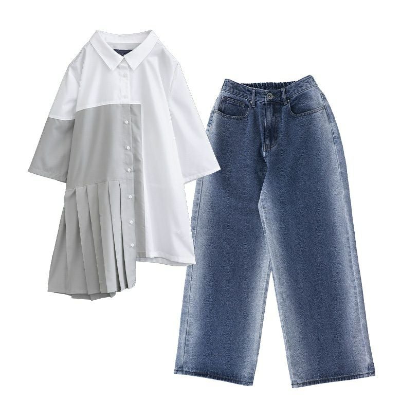 他の画像を見る 届いてすぐにお洒落に変身2点コーデSET♪ 『ピンタックフレンチスリーブブラウス×ストレッチストレートデニムパンツコーデ2点SET』【メール便不可】【30】 ¥ 6,960 税込 (0)