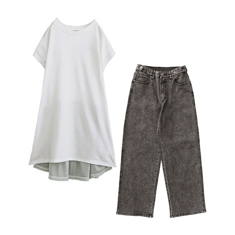 他の画像を見る 届いてすぐにお洒落に変身2点コーデSET♪ 『ラメ切替フレンチスリーブプルオーバー×ストレッチストレートデニムパンツコーデ2点SET』【メール便不可】【30】 ¥ 7,970 税込 (0)