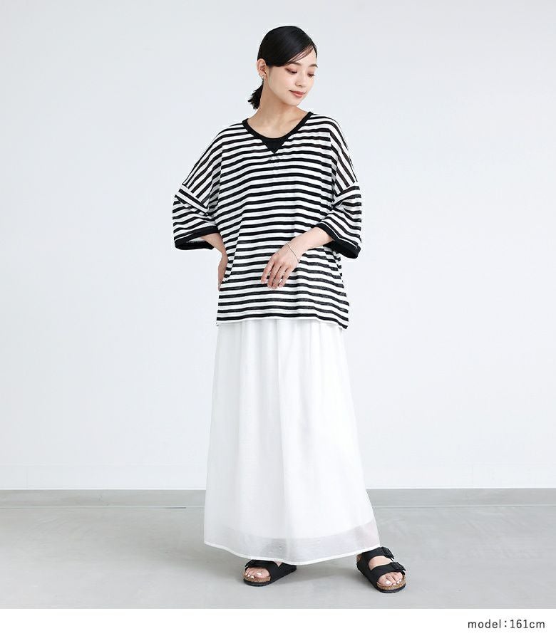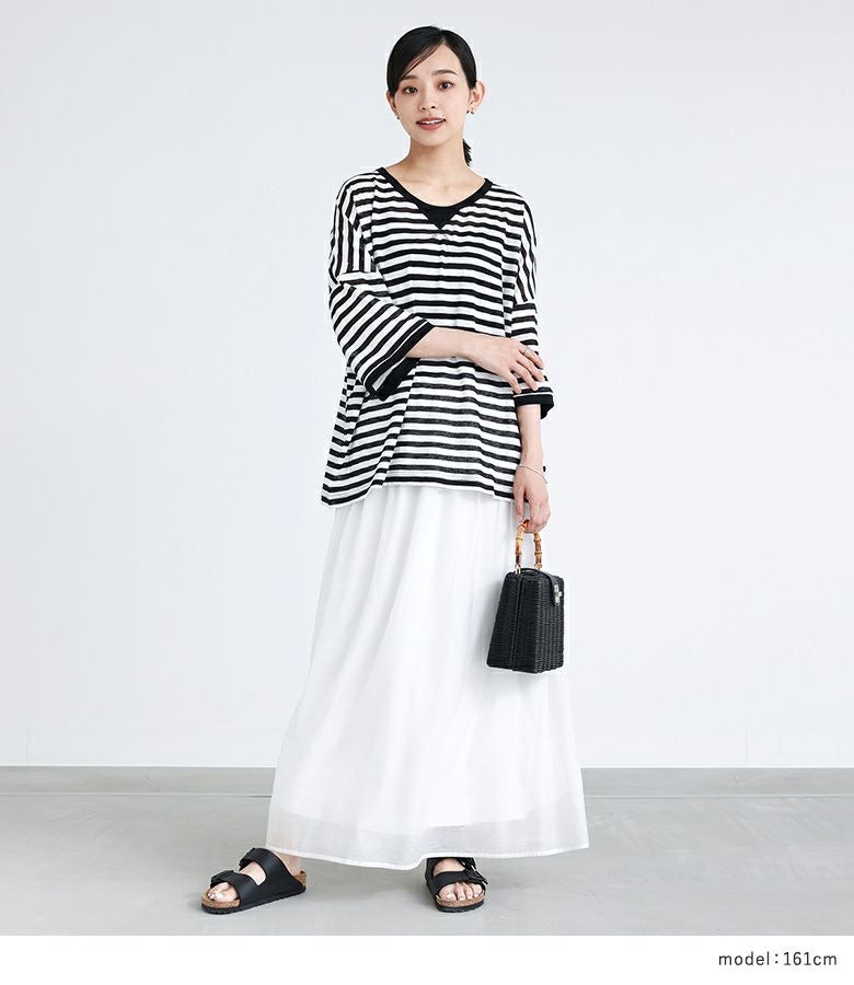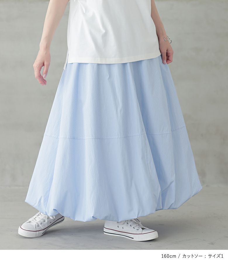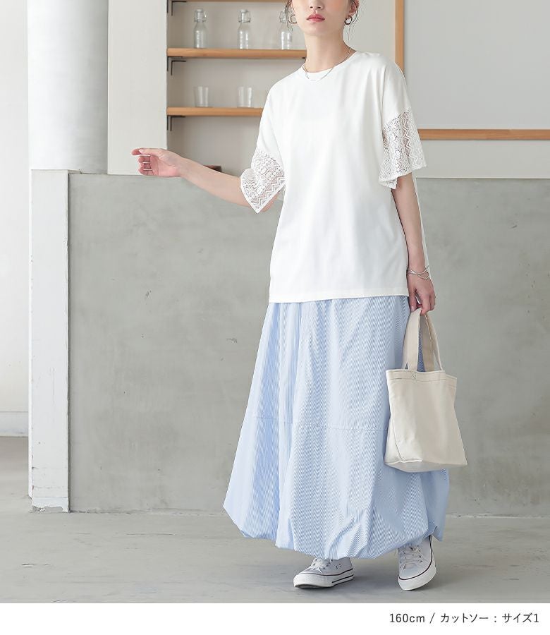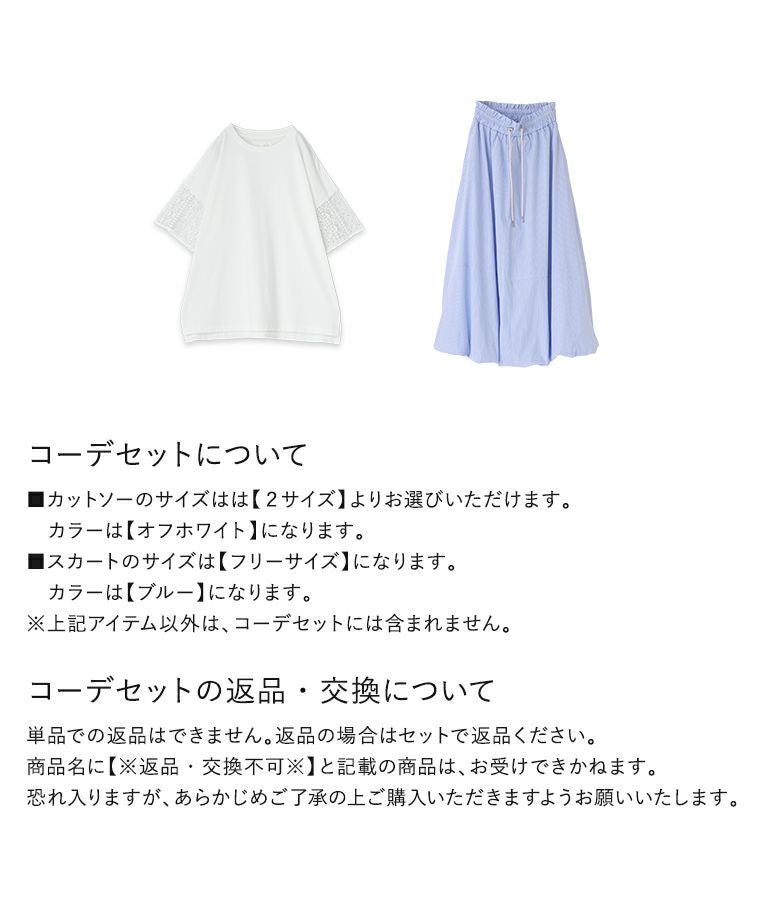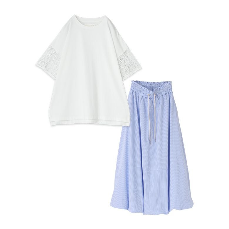 他の画像を見る 届いてすぐにお洒落に変身2点コーデSET♪ 『ウエストドロストストライプバルーンスカート×レーススリーブカットソーコーデ2点SET』【メール便不可】【40】 ¥ 7,970 税込 (0)