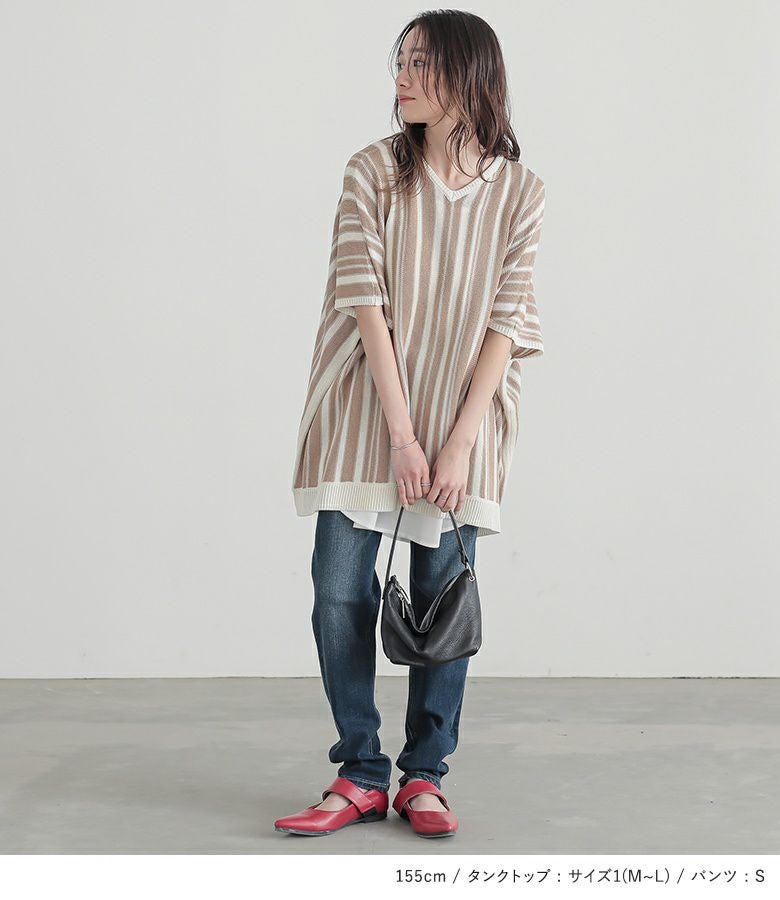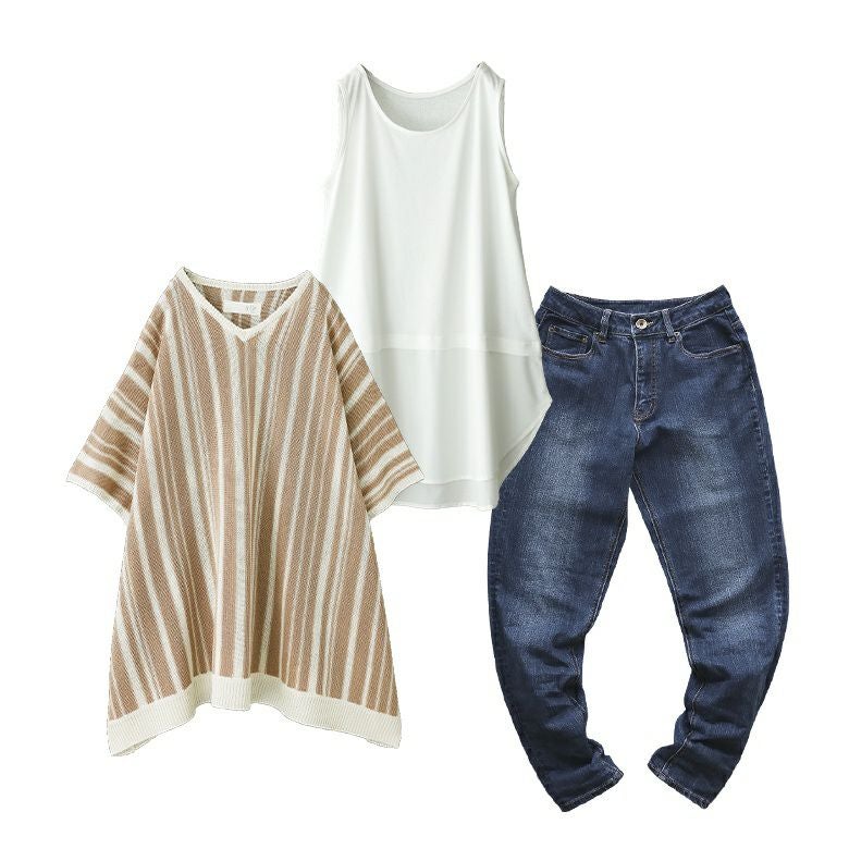 他の画像を見る 送料無料★届いてすぐにお洒落に変身3点コーデSET♪ 【送料無料】『ランダムストライプドルマンニット×吸水速乾レイヤードタンクトップ×ストレッチボーイフレンドデニムコーデ3点SET』【メール便不可】【50】 ¥ 11,930 税込 (0)
