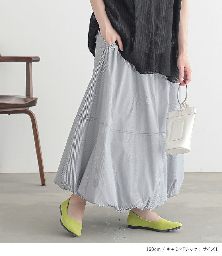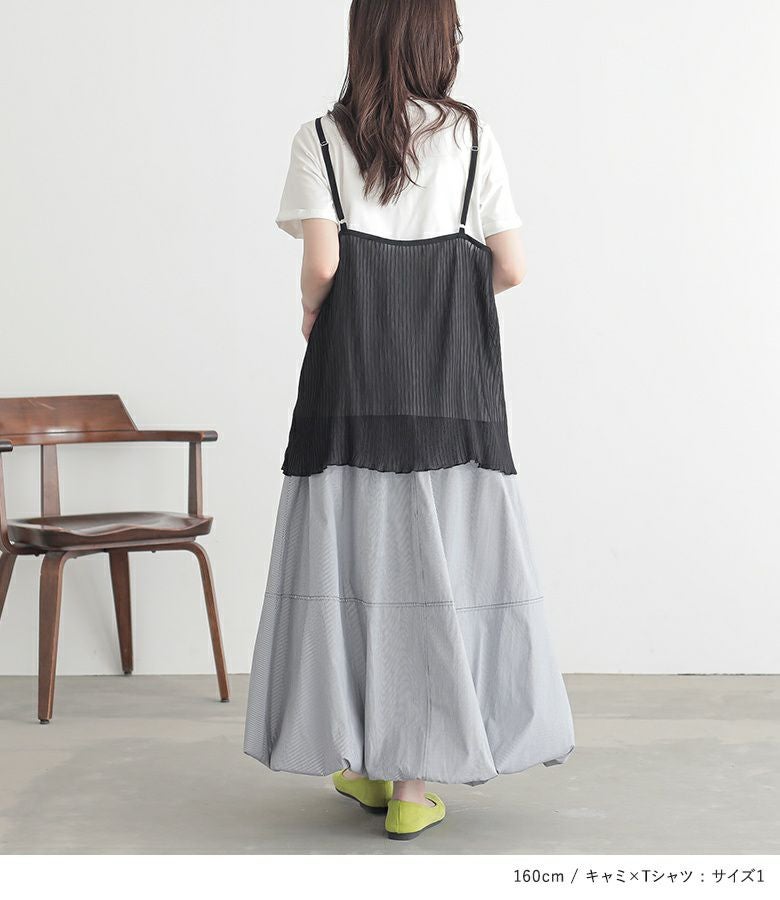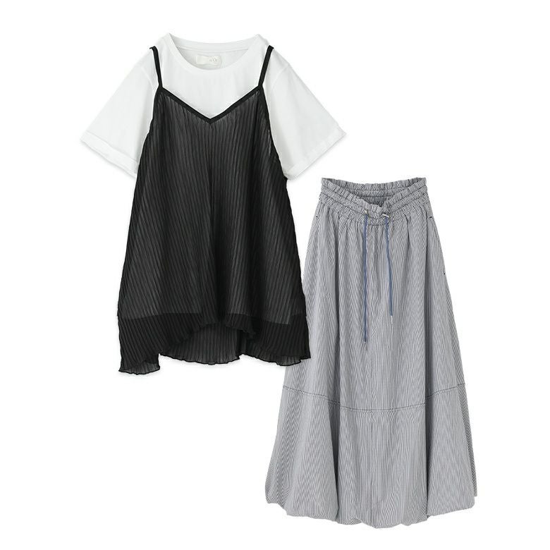 他の画像を見る 送料無料★届いてすぐにお洒落に変身2点コーデSET♪ 【送料無料】『ウエストドロストストライプバルーンスカート×シアープリーツキャミ×Tシャツコーデ2点SET』【メール便不可】【40】 ¥ 8,940 税込 (0)