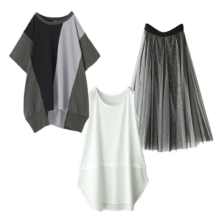 他の画像を見る 送料無料★届いてすぐにお洒落に変身3点コーデSET♪ 【送料無料】『3配色ドルマンカットソー×吸水速乾レイヤードタンクトップ×配色ボリュームチュールスカートコーデ3点SET』【メール便不可】【30】 ¥ 9,940 税込 (0)