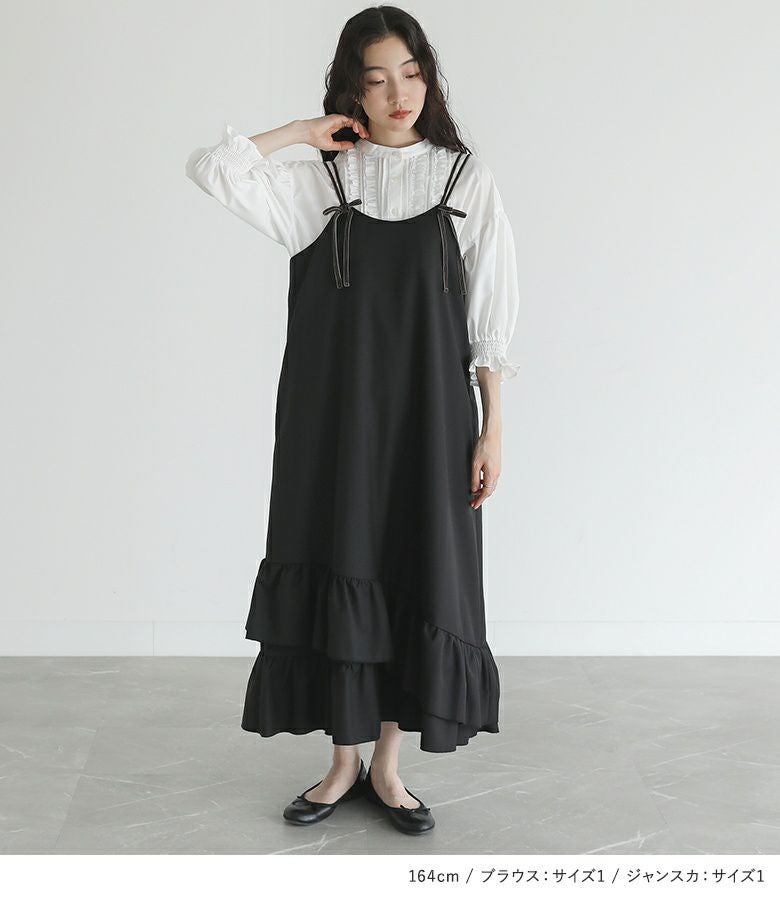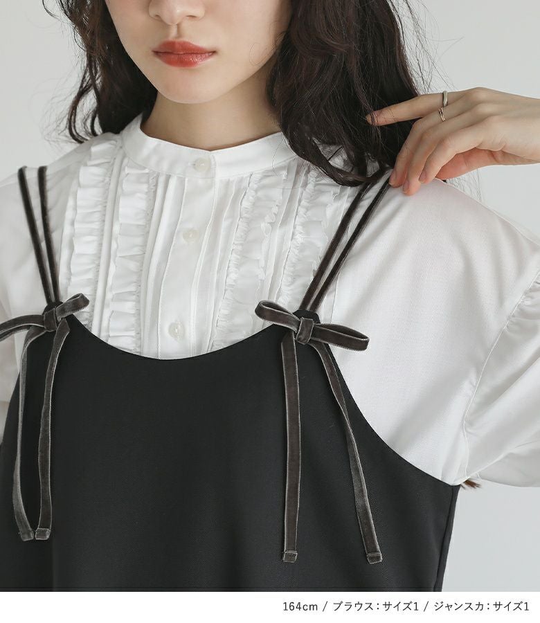 他の画像を見る 送料無料★届いてすぐにお洒落に変身2点コーデSET♪ 【送料無料】『7分袖フリルピンタックブラウス×ベロアリボンキャミジャンスカコーデ2点SET』【メール便不可】【40】 ¥ 14,960 税込 (0)