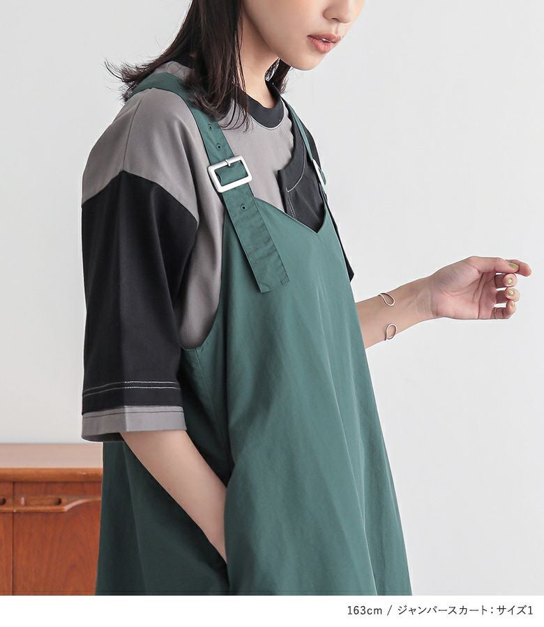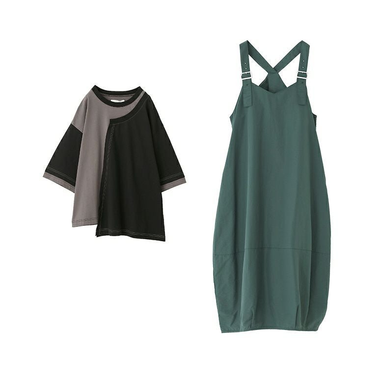 他の画像を見る 送料無料★届いてすぐにお洒落に変身2点コーデSET♪ 【送料無料】『コクーンナイロンジャンパースカート×配色アシメ切替カットソーコーデ2点SET』【メール便不可】【20】 ¥ 8,940 税込 (0)