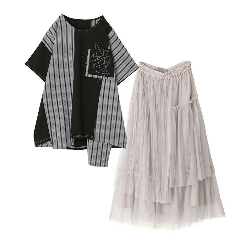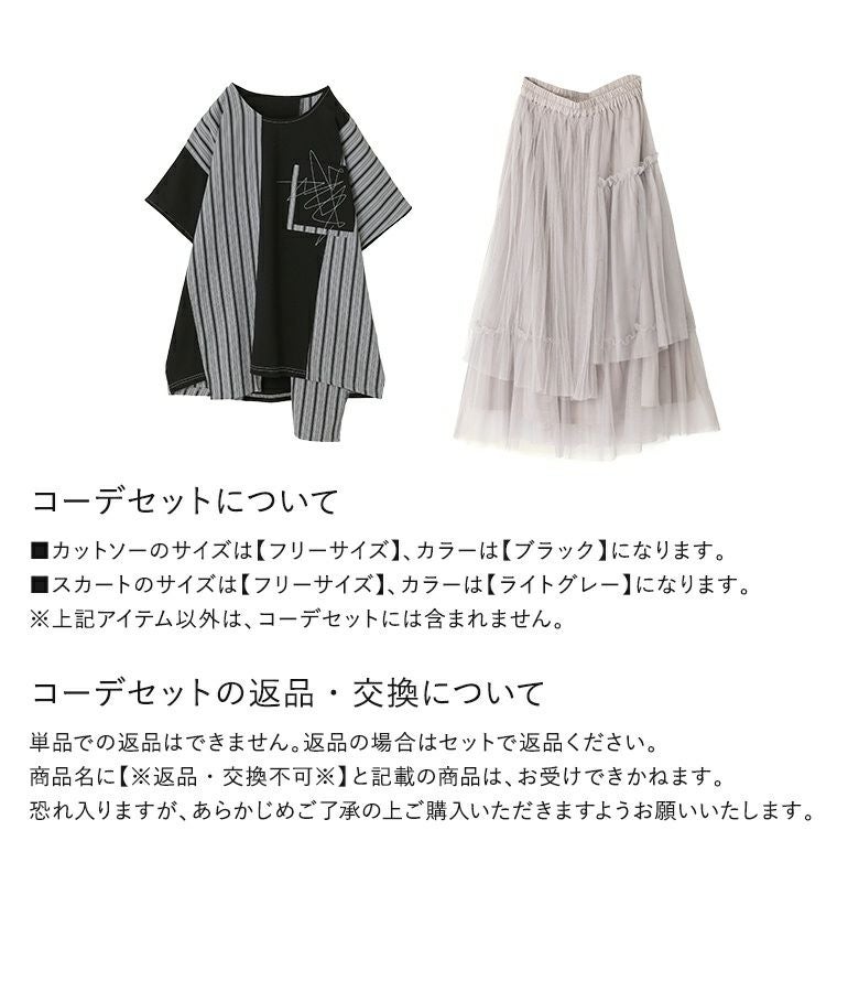 他の画像を見る 送料無料★届いてすぐにお洒落に変身2点コーデSET♪ 【送料無料】『ストライプ切替ドルマンカットソー×プリーツデザインチュールスカートコーデ2点SET』【メール便不可】【30】 ¥ 12,960 税込 (0)