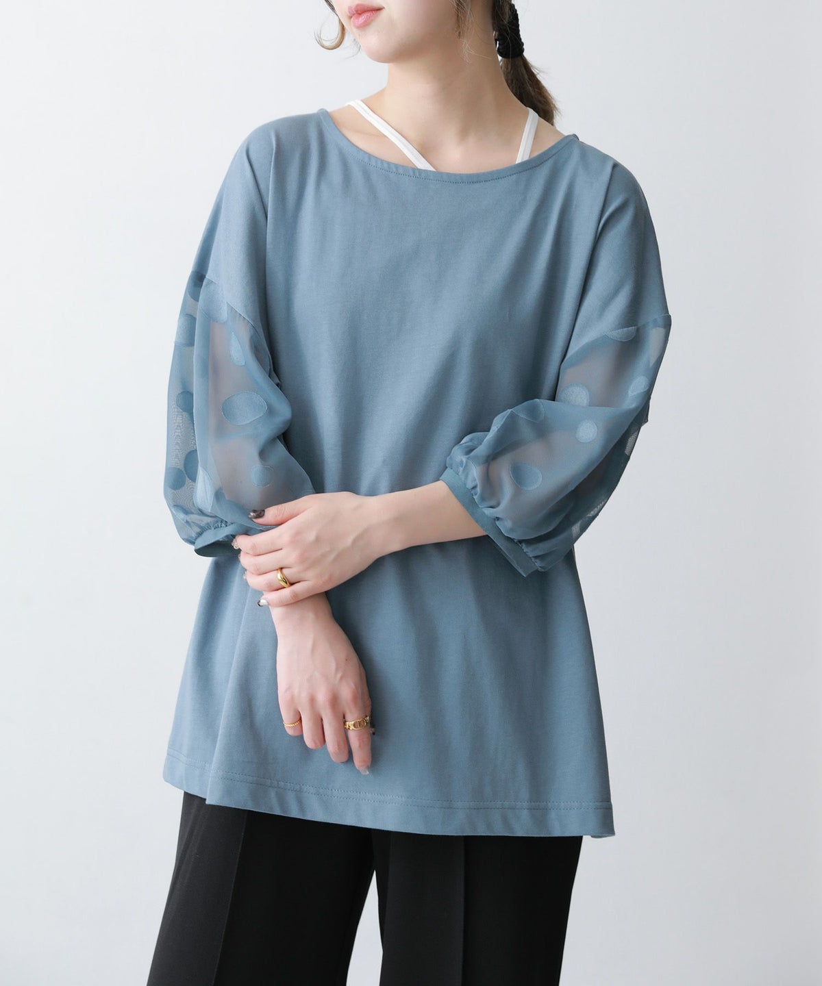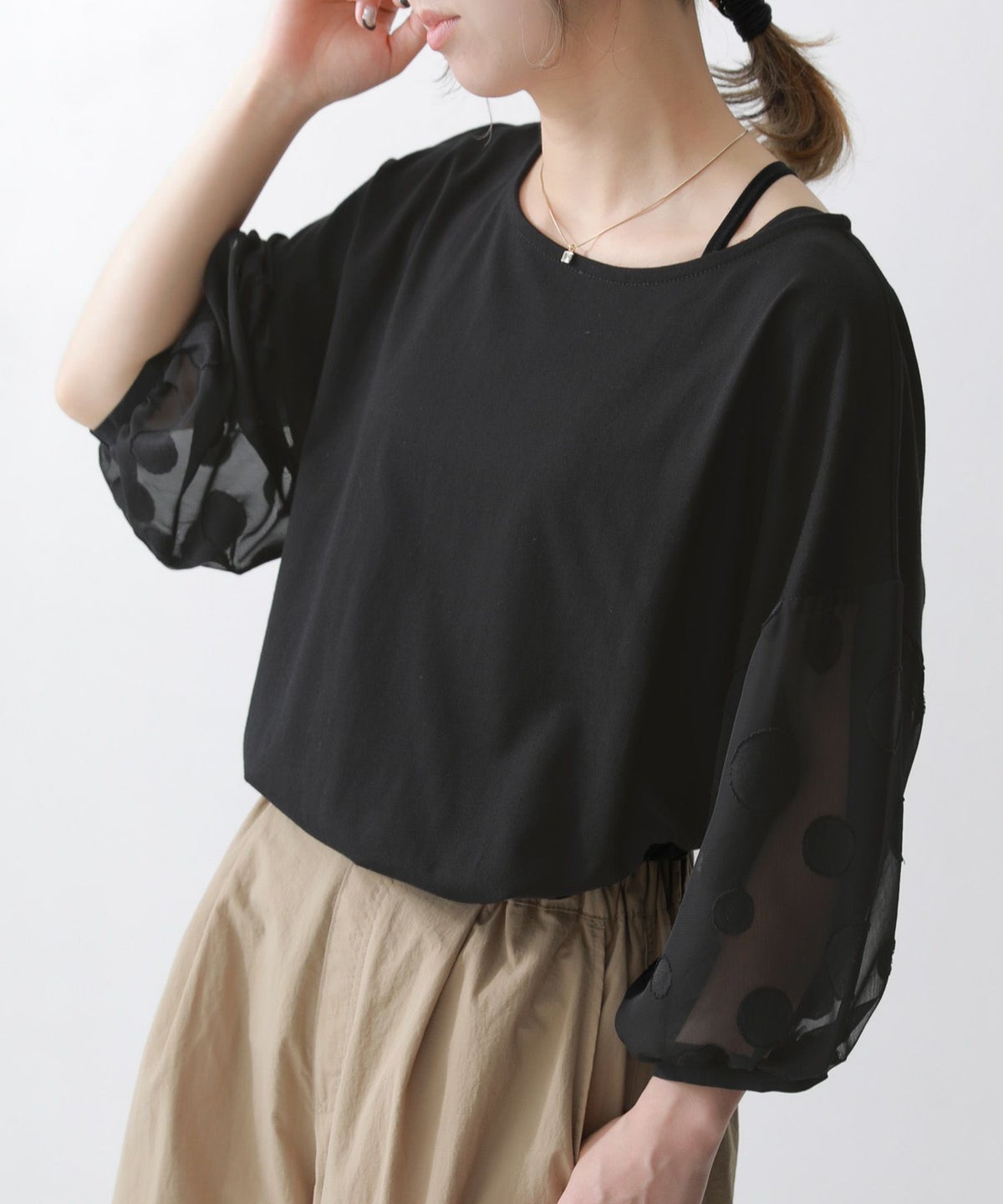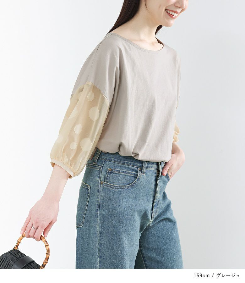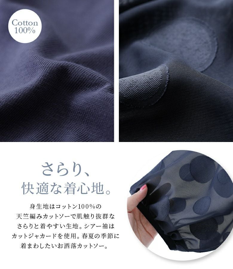 他の画像を見る 【40%OFF】大人かわいい抜け感放つシアードットカットソー♪ 『n'OrLABELドット柄シアー袖カットソー』※返品交換不可※※メール便可※【5】 定価 ¥ 3,960 のところ ¥ 2,376 税込 4.48 (23)