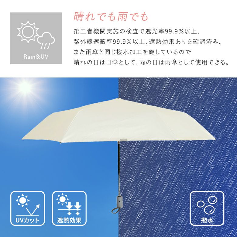 他の画像を見る 遮光率・UVカット率99.9%以上!片手でパッ!自動開閉の晴雨兼用折りたたみ傘。 『ゼロアンド晴雨兼用自動開閉折りたたみ傘』【メール便不可】【20】 ¥ 4,290 税込 4.00 (3)