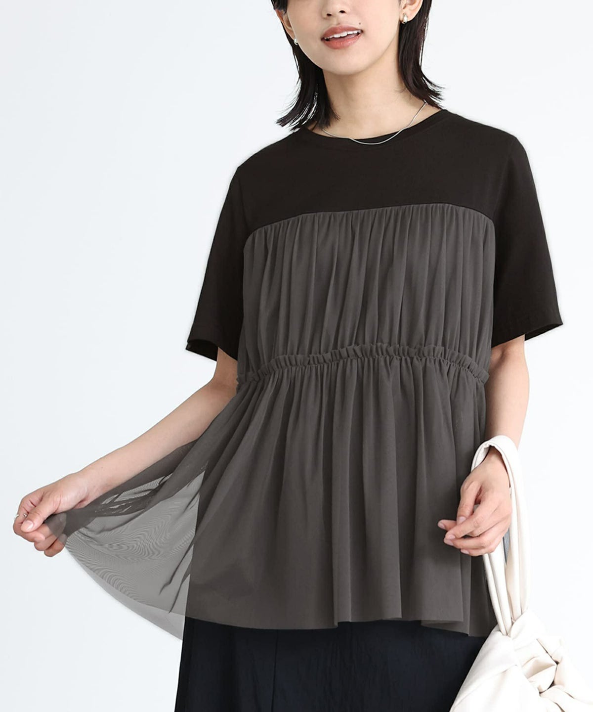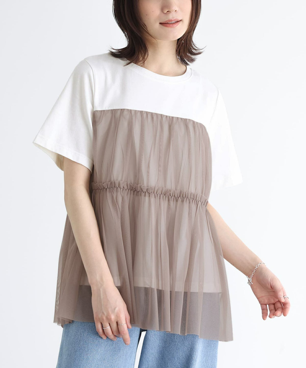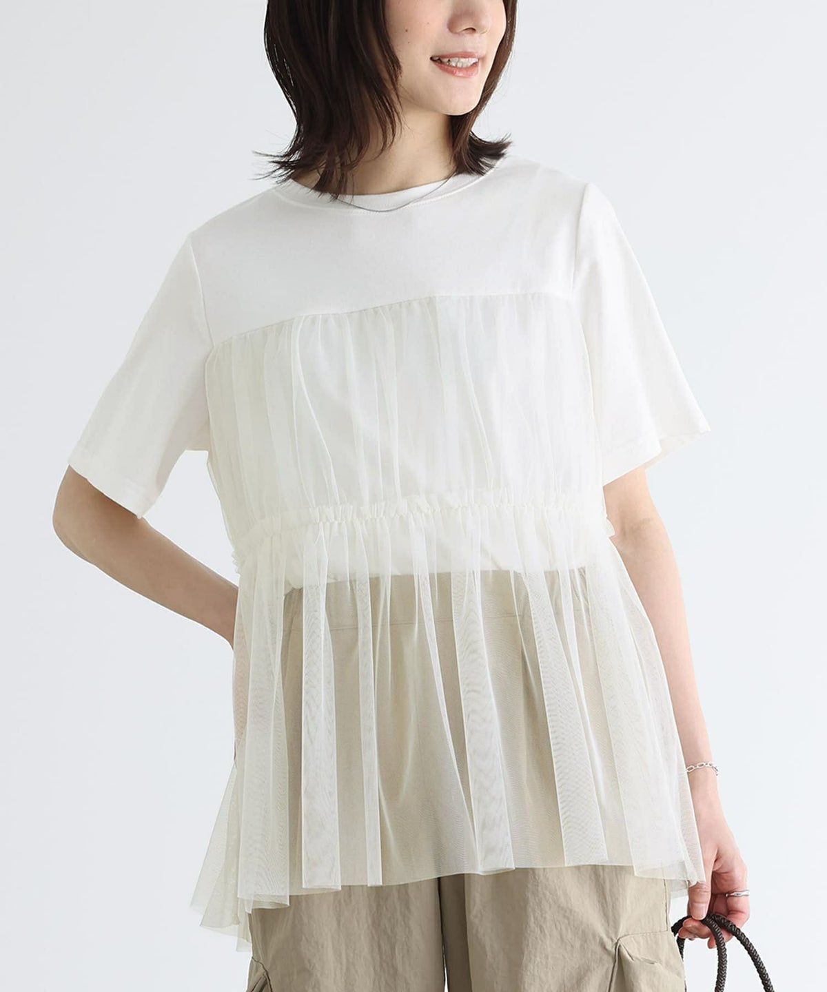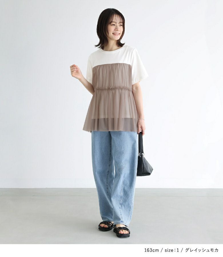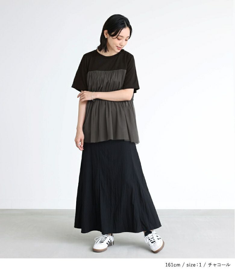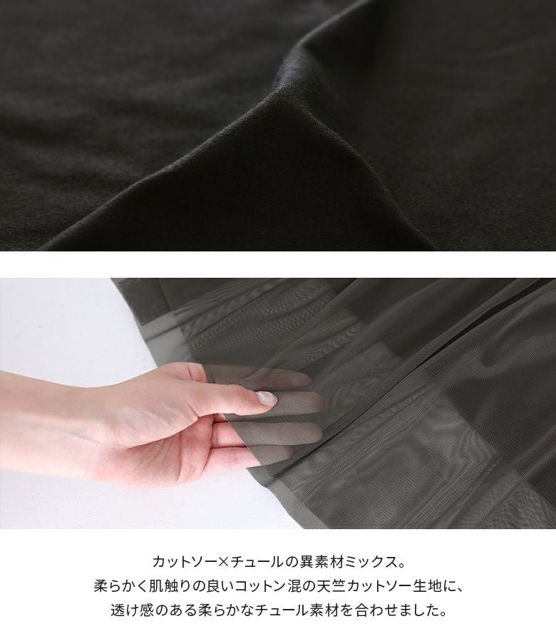 他の画像を見る 選べるM~3Lサイズ展開!カットソーにチュールを合わせたTシャツ。 『n'OrLABELビスチェ風チュールレイヤードTシャツ』※メール便可※【10】 ¥ 3,960 税込 4.40 (5)