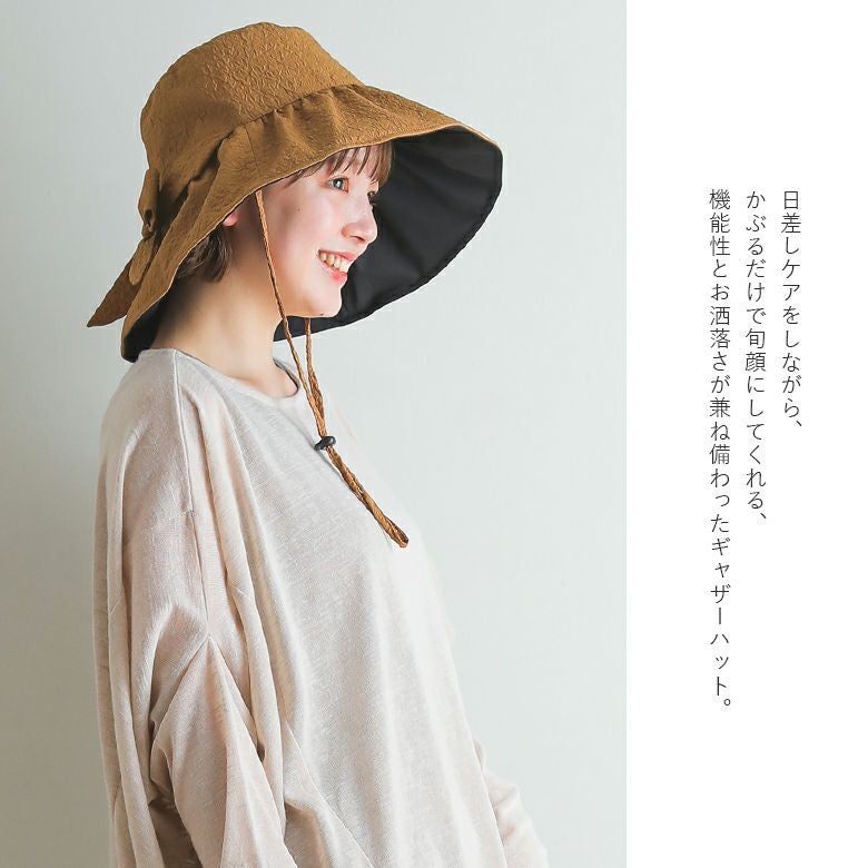 他の画像を見る 【20%OFF】顔周りの日差し対策に!機能性とお洒落さを兼ね備えたUVカットギャザーハット♪ 『UVギャザーハット』※返品交換不可※【メール便不可】【20】 販売期間 2026/03/05 0:00 〜 2026/03/10 23:59 定価 ¥ 3,630 のところ ¥ 2,904 税込 5.00 (1)