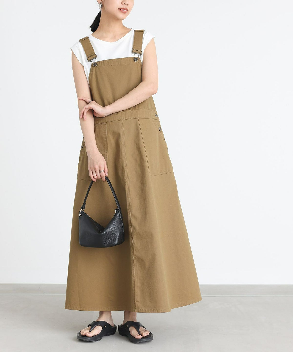 他の画像を見る 選べるM~3Lサイズ展開!広がりすぎないフレアシルエットジャンスカ。 『n'OrLABELツイルフレアジャンパースカート』【メール便不可】【20】 ¥ 5,980 税込 4.38 (8)