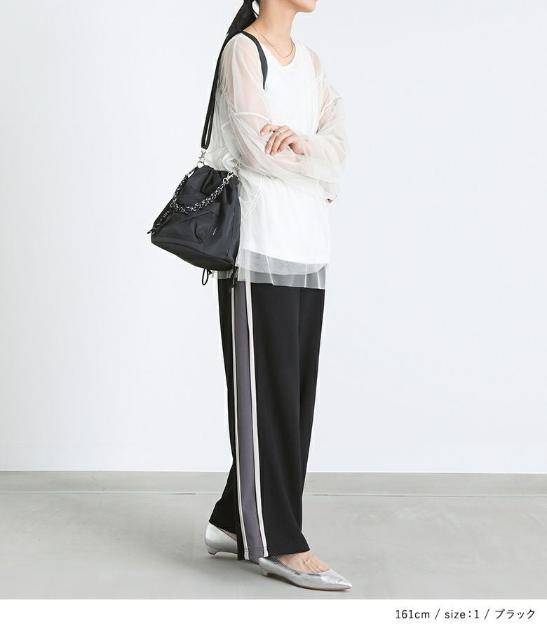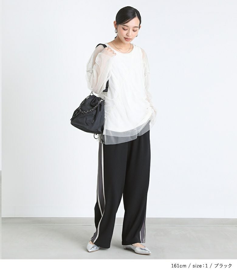 他の画像を見る 選べるM~3Lサイズ展開!すっきり見えするサイドラインパンツ。 『n'OrLABELカットジョーゼットサイドラインパンツ』【メール便不可】【20】 ¥ 4,980 税込 4.67 (3)