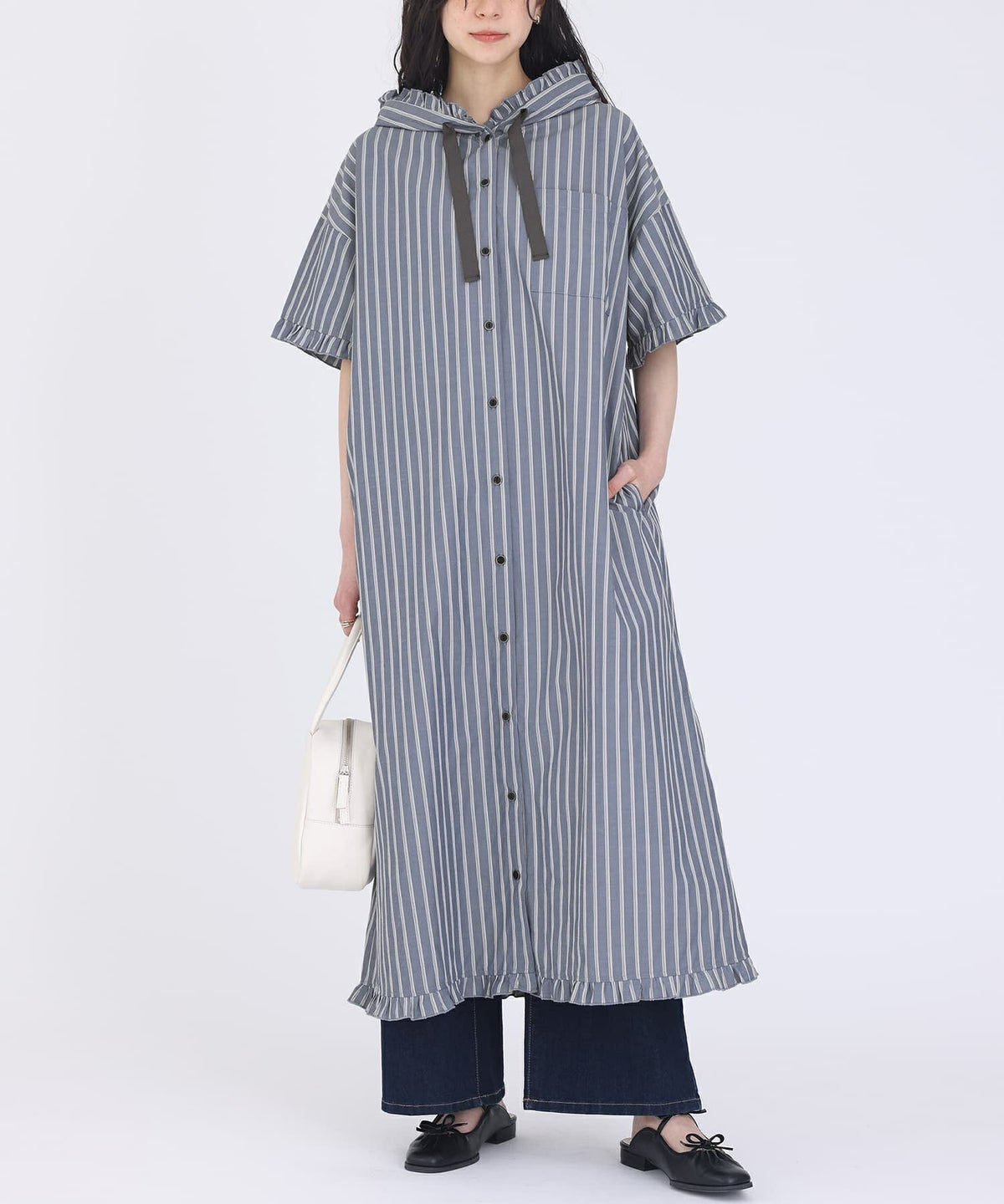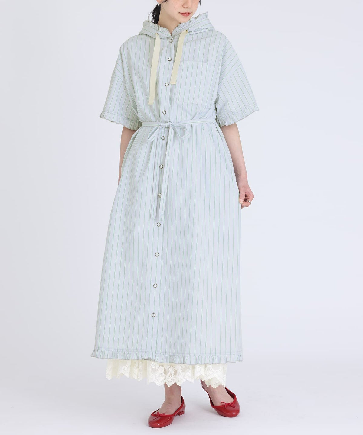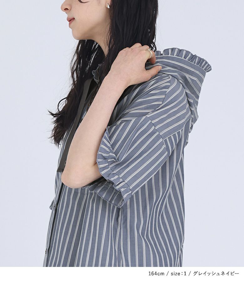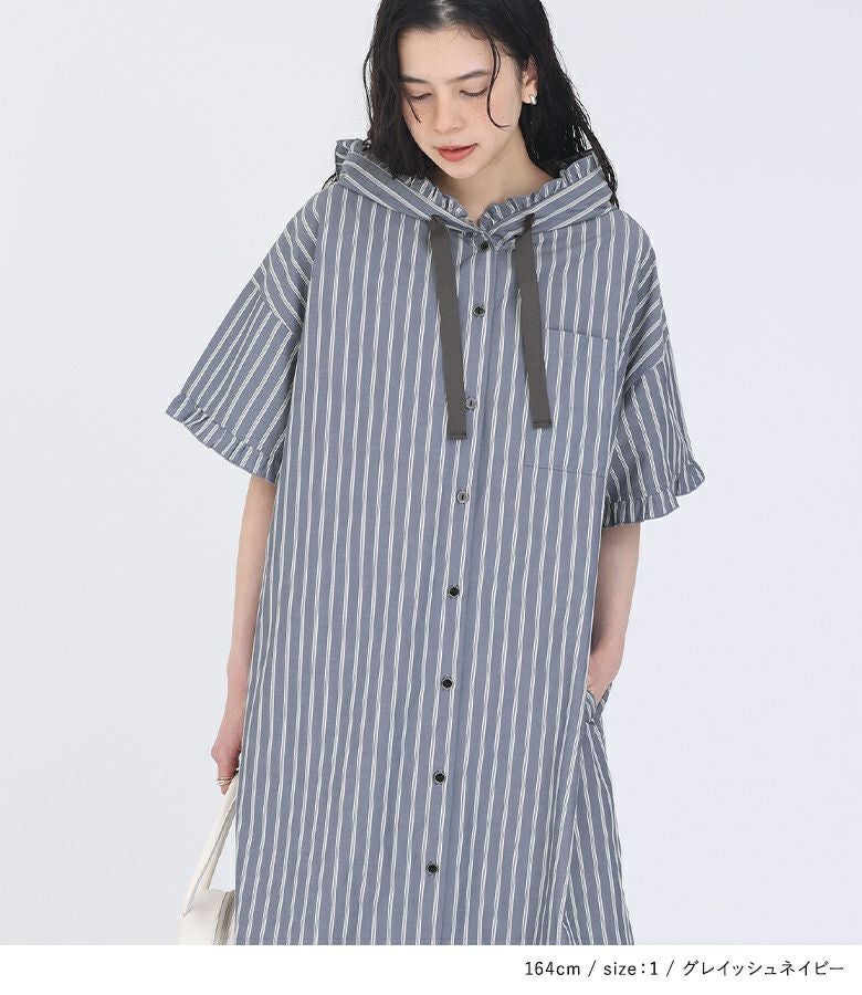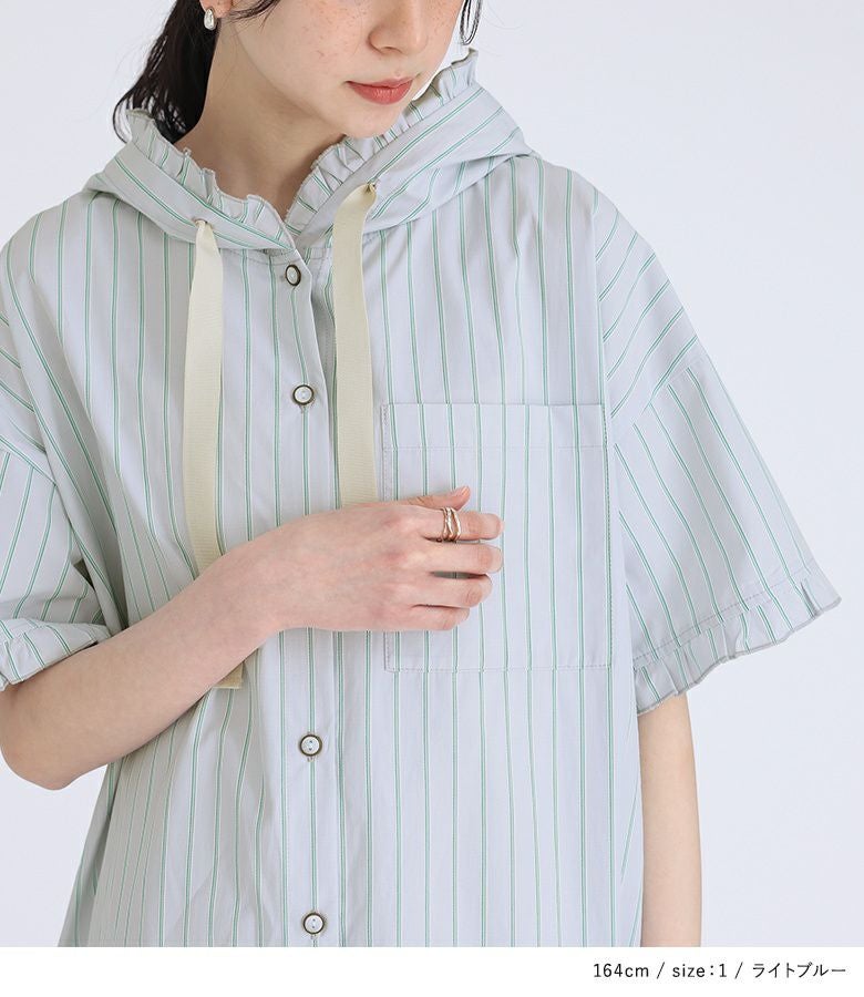 他の画像を見る 【40%OFF】選べるM~3Lサイズ展開!爽やかな配色のストライプ柄シャツワンピース。 『somari imaginationストライプ柄フリルフード付きシャツワンピース』※返品交換不可※※メール便可※【10】 販売期間 2026/03/05 0:00 〜 2026/03/10 23:59 定価 ¥ 7,980 のところ ¥ 4,788 税込 4.00 (2)