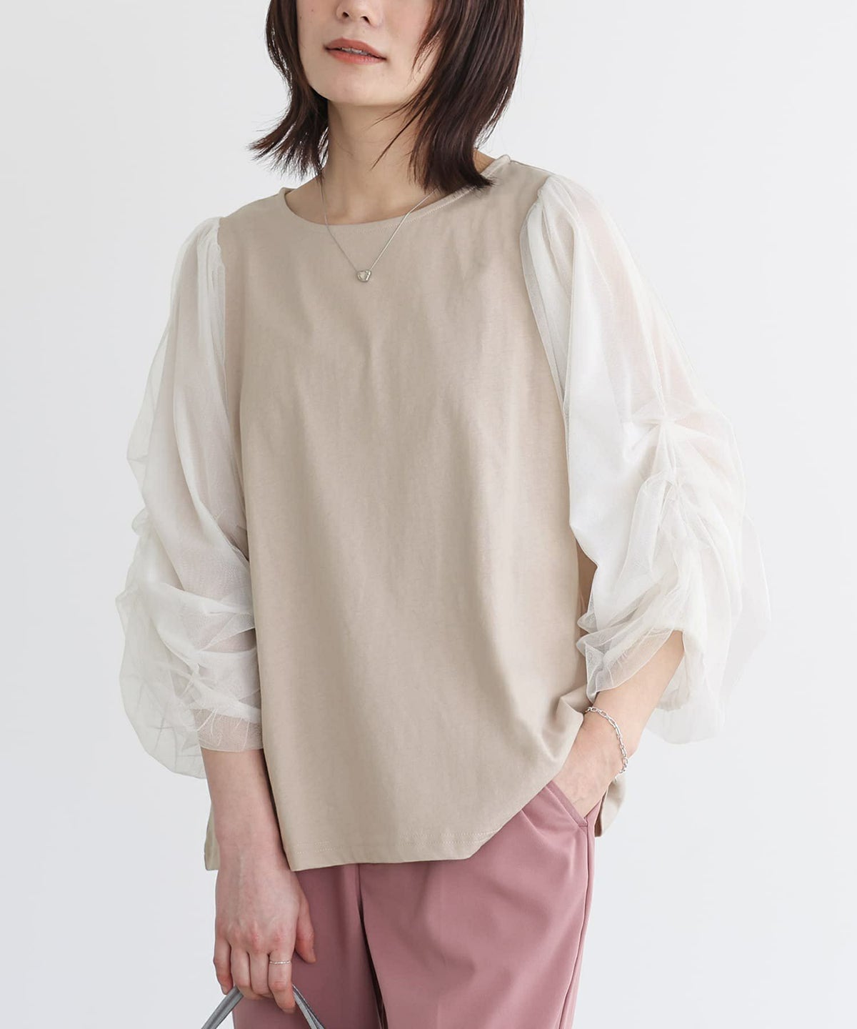 他の画像を見る 【40%OFF】選べるM~3Lサイズ展開!透け感あるボリュームスリーブがポイントのカットソー。 『n'OrLABELシアーボリュームスリーブカットソー』※返品交換不可※※メール便可※【10】 定価 ¥ 4,980 のところ ¥ 2,987 税込 4.50 (8)
