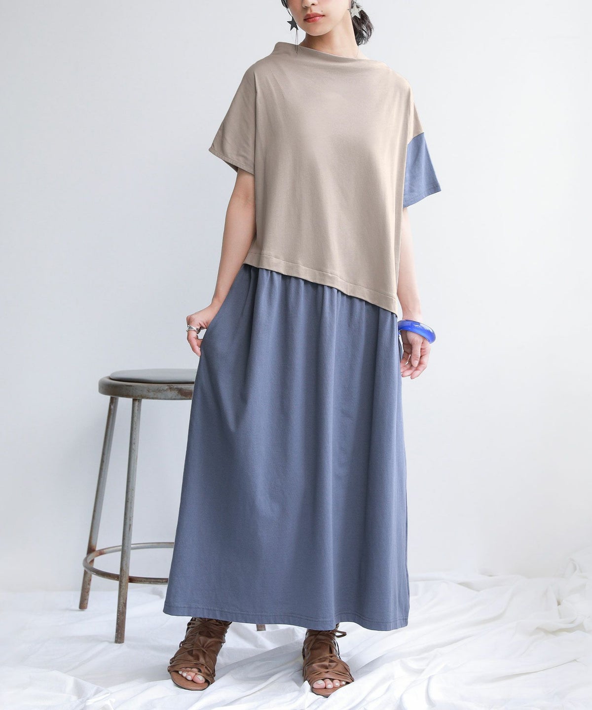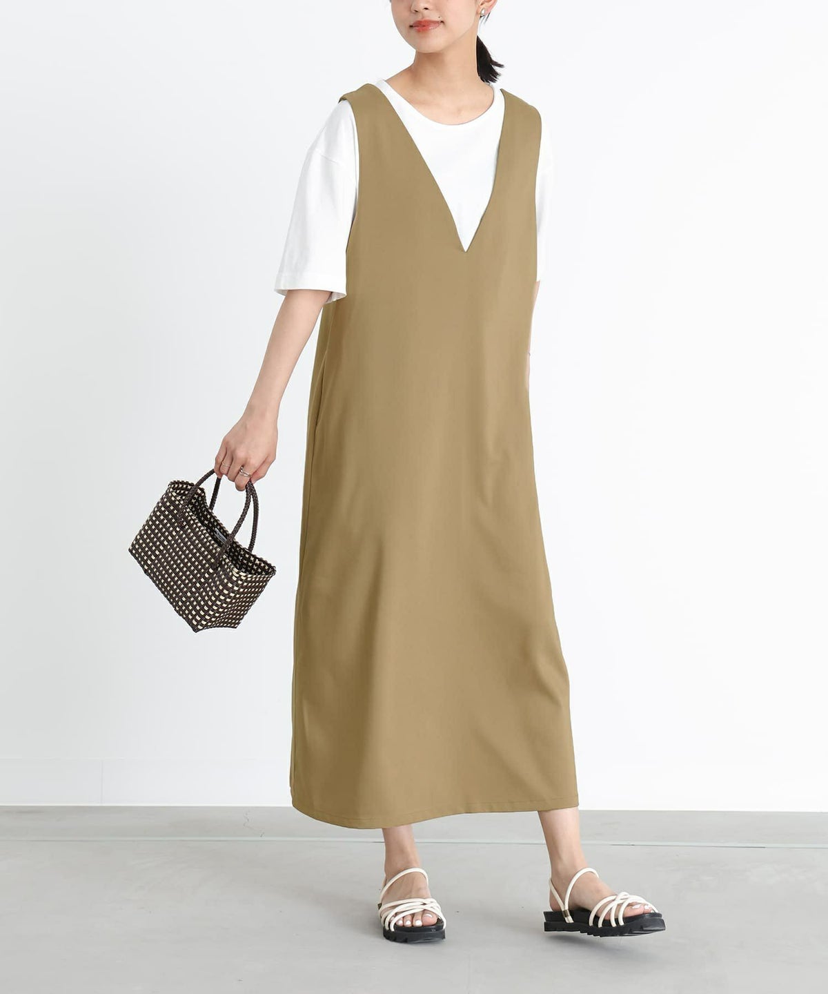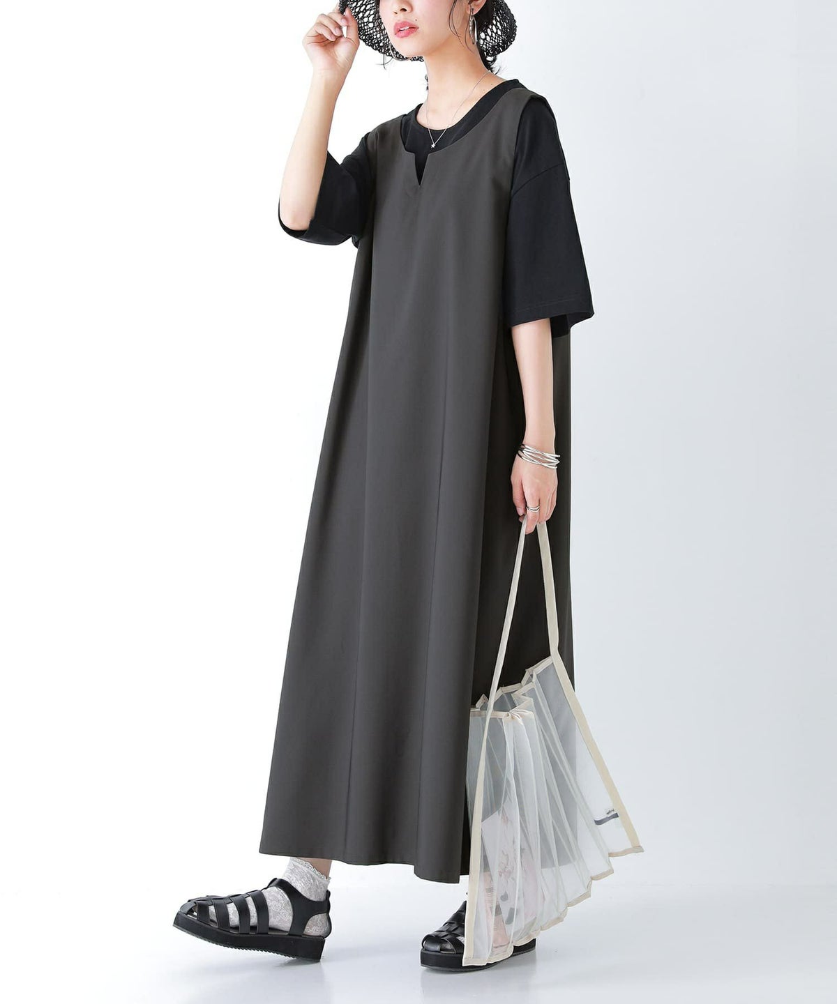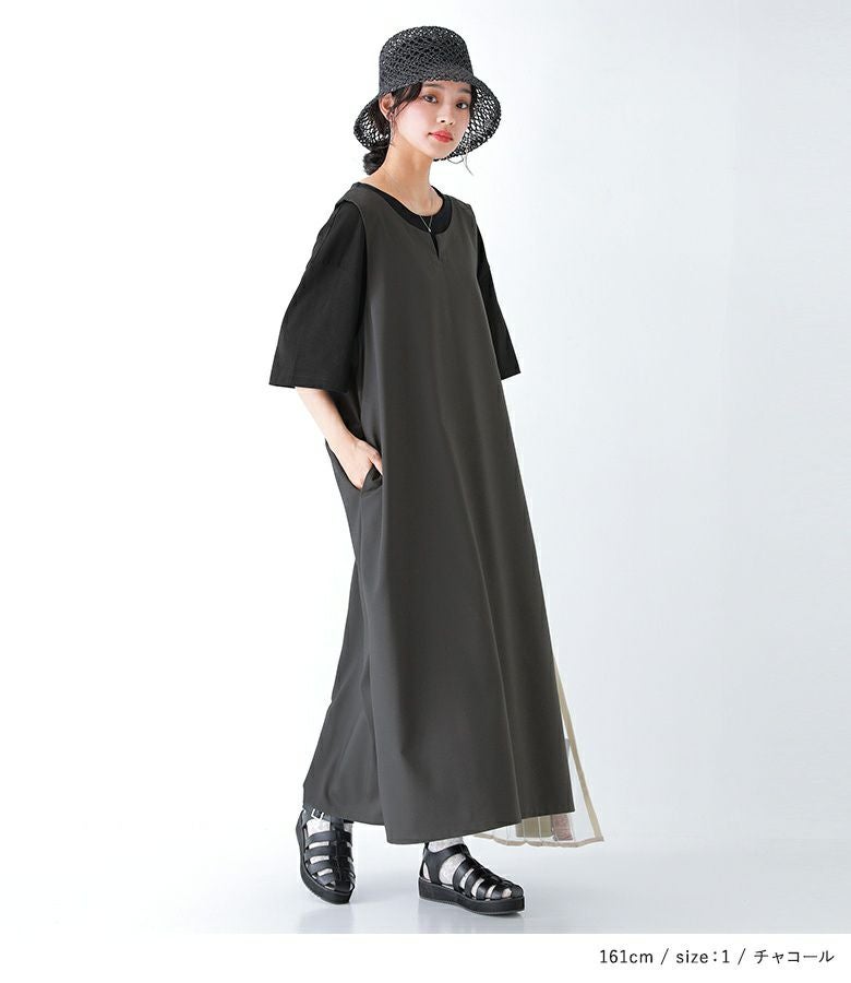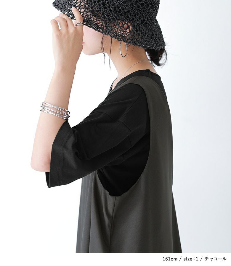 他の画像を見る 【40%OFF】選べるM~3Lサイズ展開!着回し広がるジャンスカ×Tシャツ2点セット♪ 『n'OrLABEL前後2wayジャンスカワンピ×Tシャツセット』※返品交換不可※【メール便不可】【30】 定価 ¥ 4,980 のところ ¥ 2,987 税込 4.40 (5)