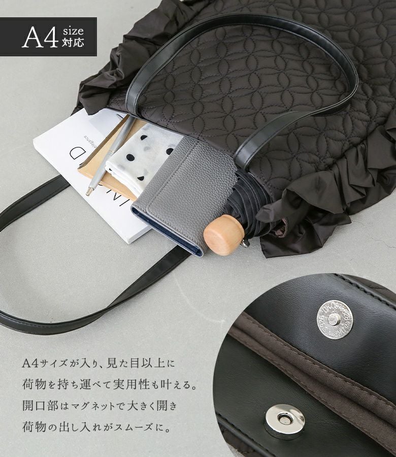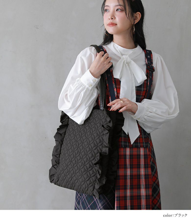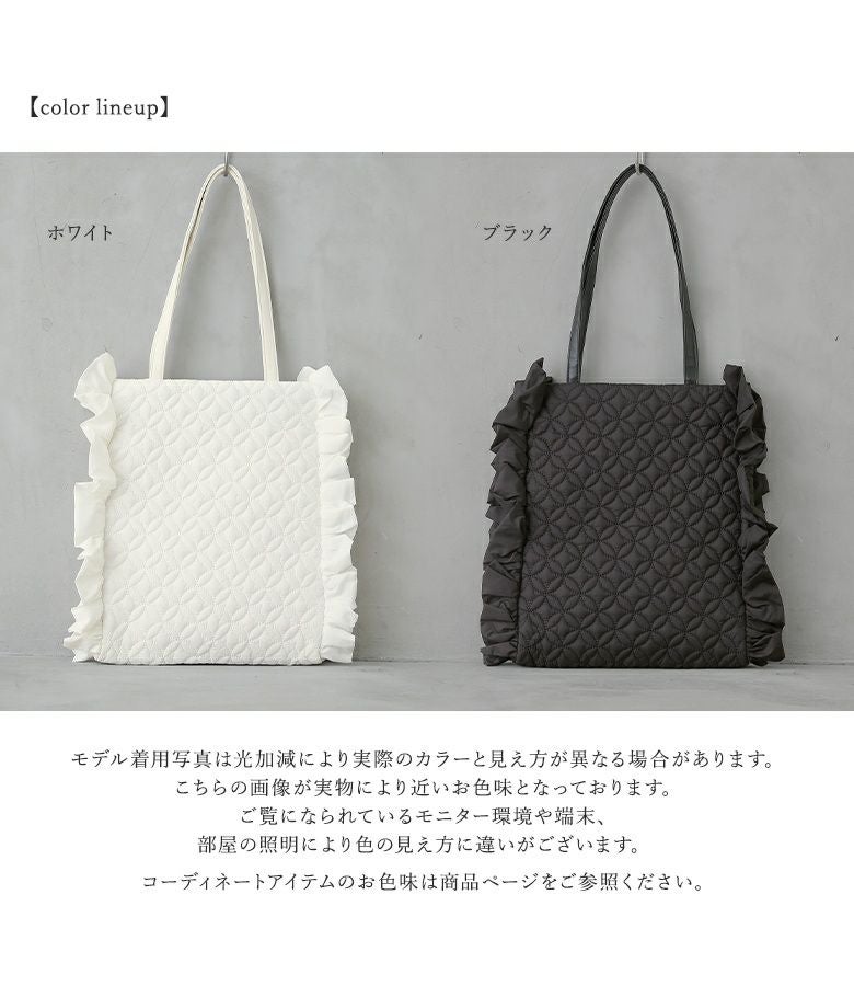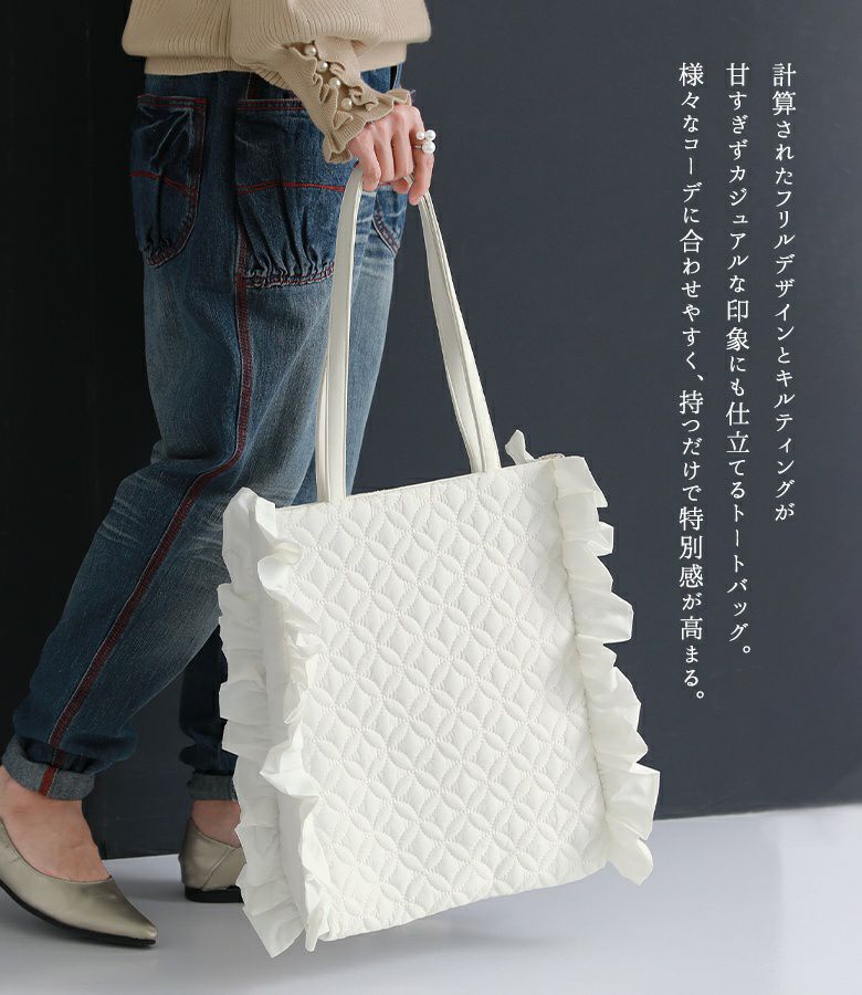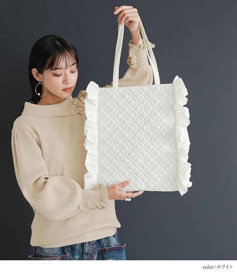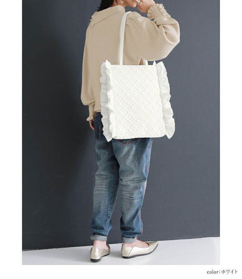 他の画像を見る 【50%OFF】計算された可愛さ♪フリルデザイントートバッグ。 『somari imaginationフリルキルティングトートバッグ』※返品交換不可※【メール便不可】【40】 定価 ¥ 5,980 のところ ¥ 2,989 税込 4.75 (4)