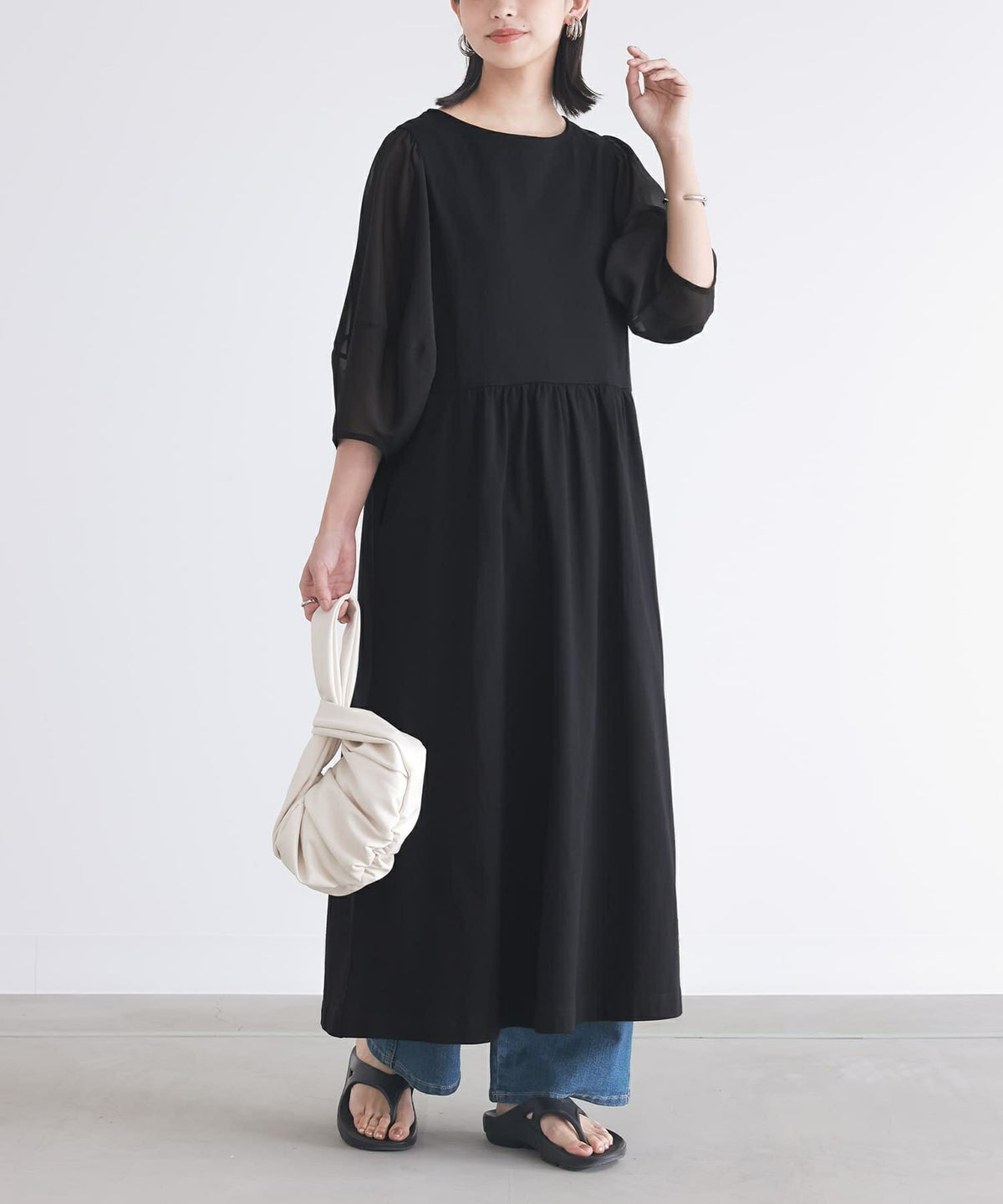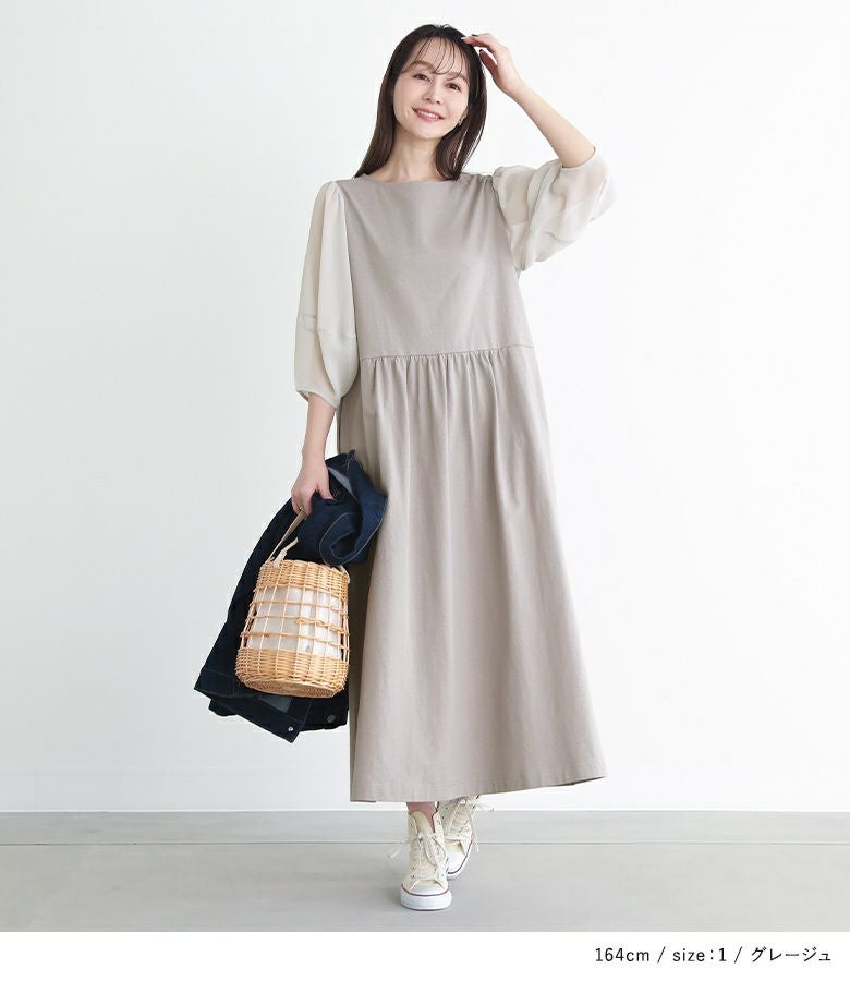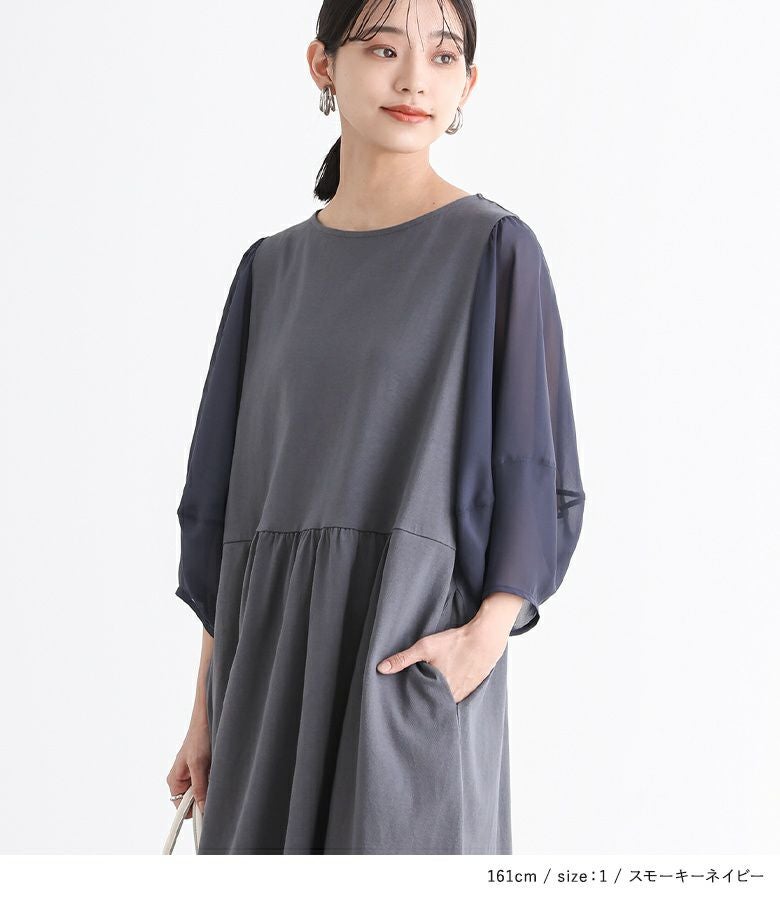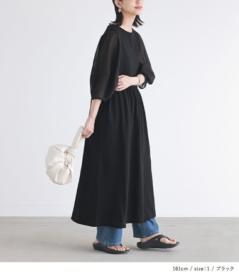 他の画像を見る 【40%OFF】選べるM~3Lサイズ展開!袖に透け感があるランタンスリーブワンピース。 『n'OrLABEL異素材ランタンスリーブワンピース』※返品交換不可※【メール便不可】【20】 定価 ¥ 4,980 のところ ¥ 2,987 税込 4.29 (7)