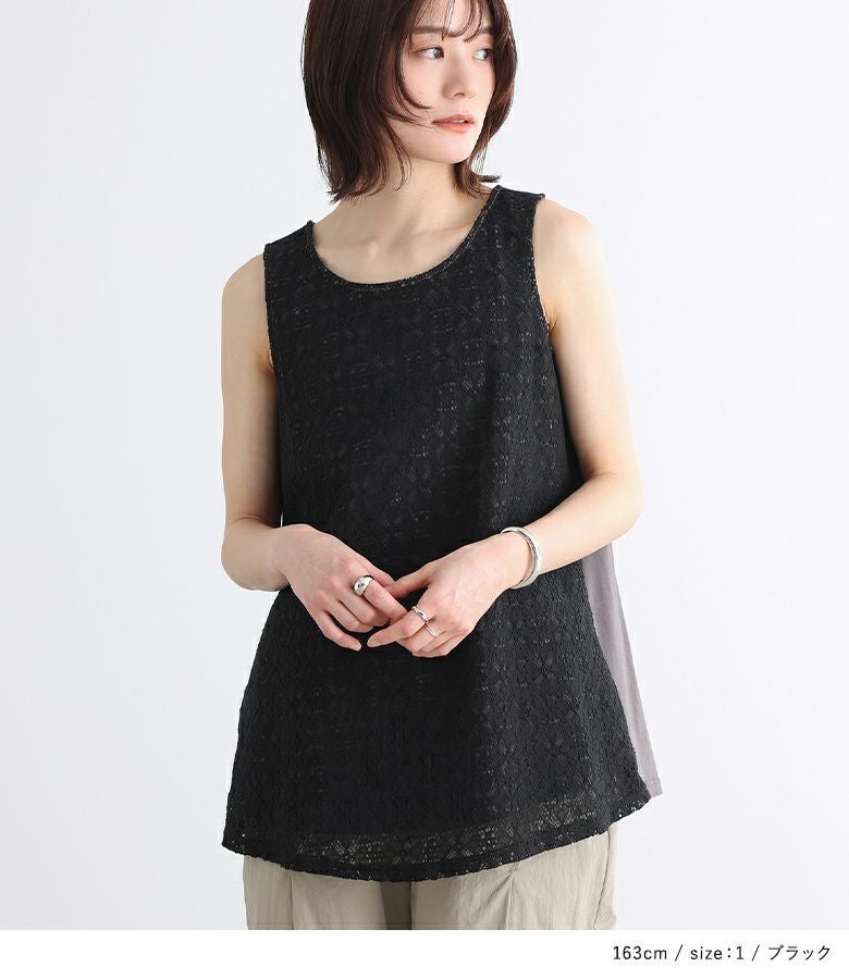 他の画像を見る 【40%OFF】選べるM~3Lサイズ展開!異素材ドッキングの配色を楽しむタンクトップ。 『n'OrLABELレースドッキング配色タンクトップ』※返品交換不可※※メール便可※【5】 定価 ¥ 3,960 のところ ¥ 2,376 税込 4.00 (4)
