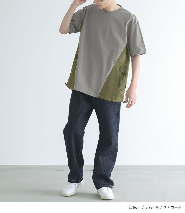 他の画像を見る 【70%OFF】選べる2サイズ展開!配色切り替えがポイントのデザインTシャツ。 『n'OrLABEL異素材デザインTシャツ』※返品交換不可※※メール便可※【10】 定価 ¥ 6,980 のところ ¥ 2,094 税込 4.00 (1)