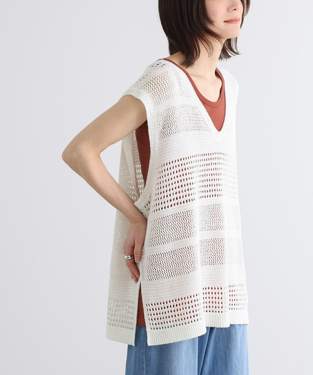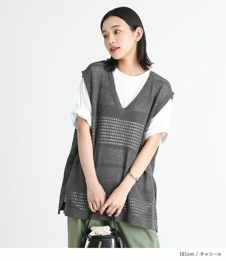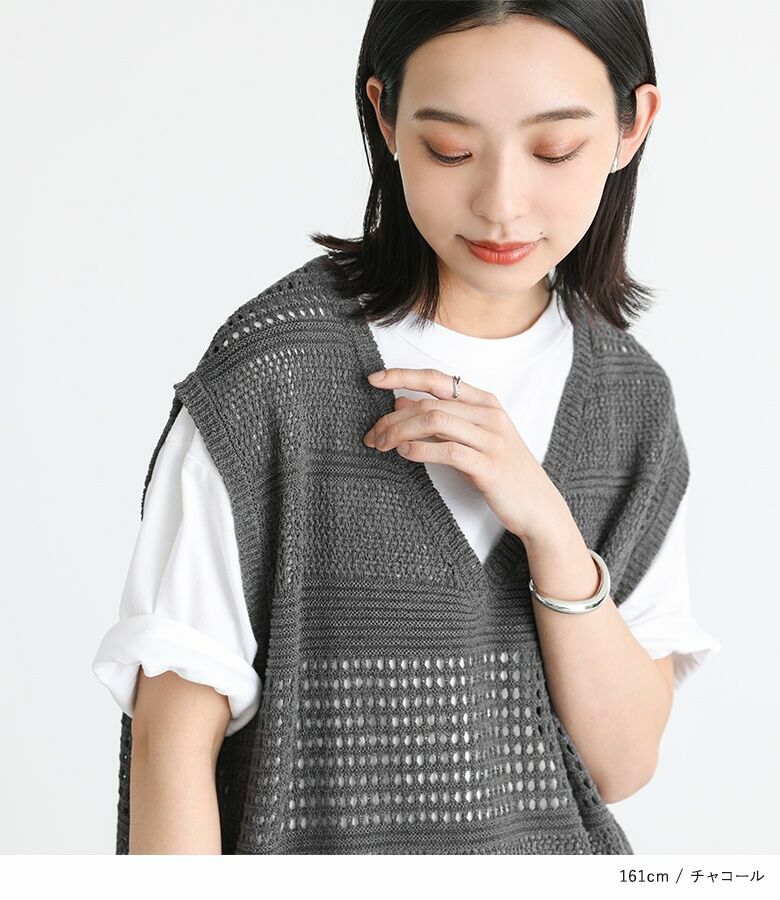 他の画像を見る 【40%OFF】透かし編みデザインのテープヤーンニットベスト。 『n'OrLABELテープヤーン透かし編みニットベスト』※返品交換不可※※メール便可※【10】 定価 ¥ 4,980 のところ ¥ 2,987 税込 4.00 (1)