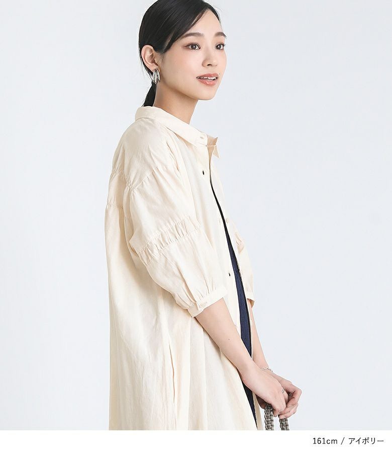 他の画像を見る 【40%OFF】ぽわんとしたギャザー袖がポイントのワンピース。 『ギャザースリーブシャツワンピース』※返品交換不可※【メール便不可】【30】 定価 ¥ 4,980 のところ ¥ 2,987 税込 (0)