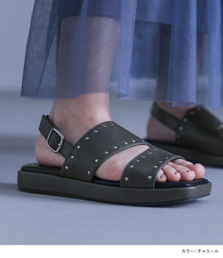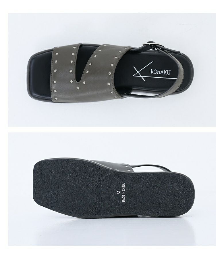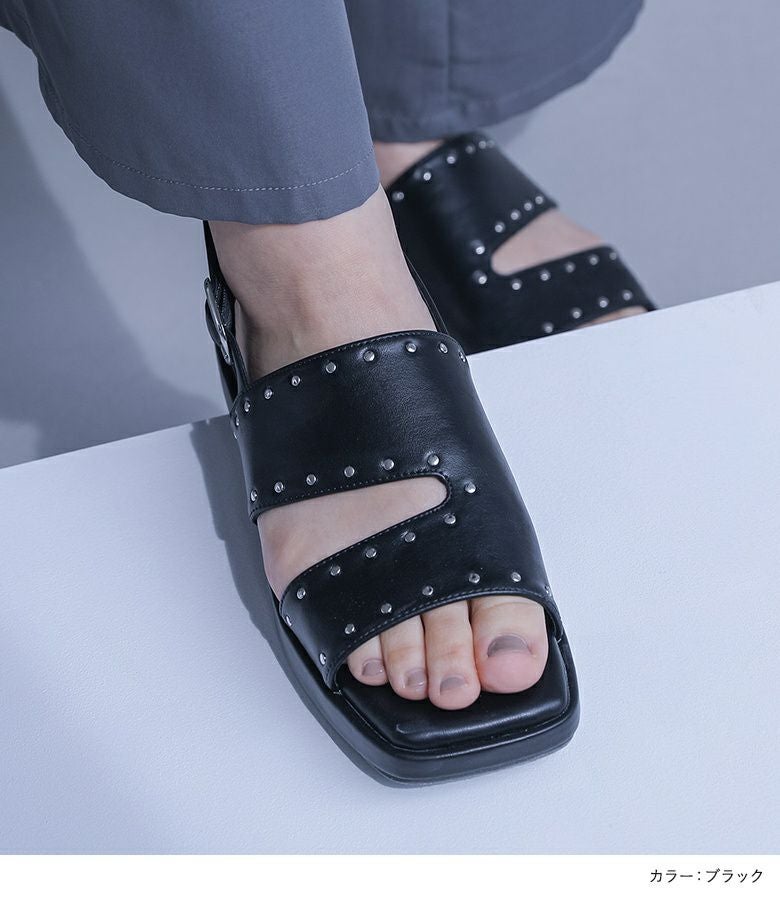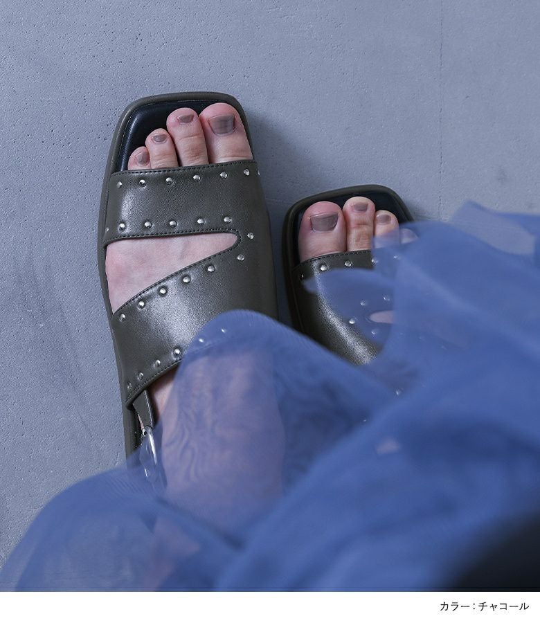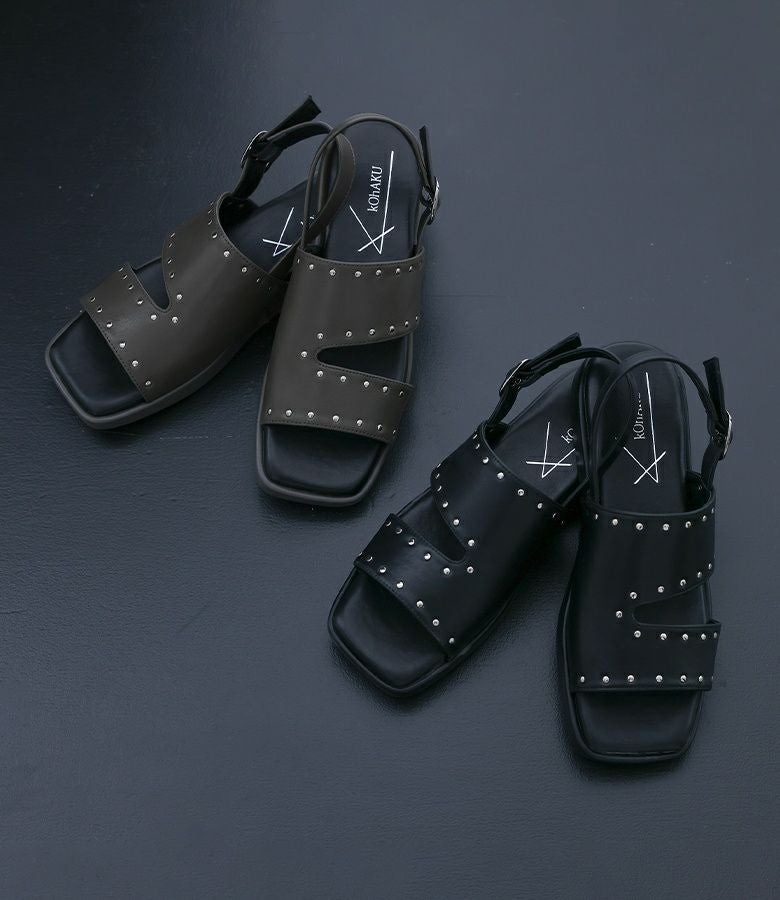 他の画像を見る 選べるM L LLサイズ展開!サイドにカッティングを施したスクエアトゥサンダル。 『kOhAKUカッティングスタッズサンダル』【メール便不可】【40】 ¥ 6,980 税込 5.00 (1)