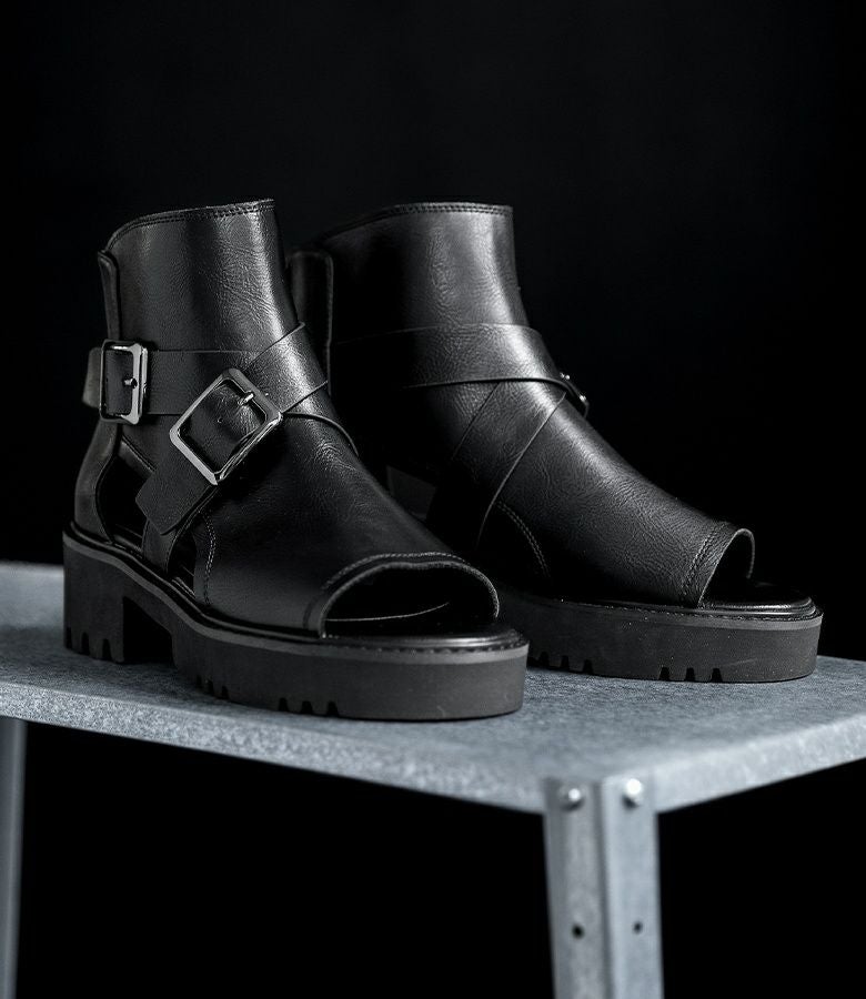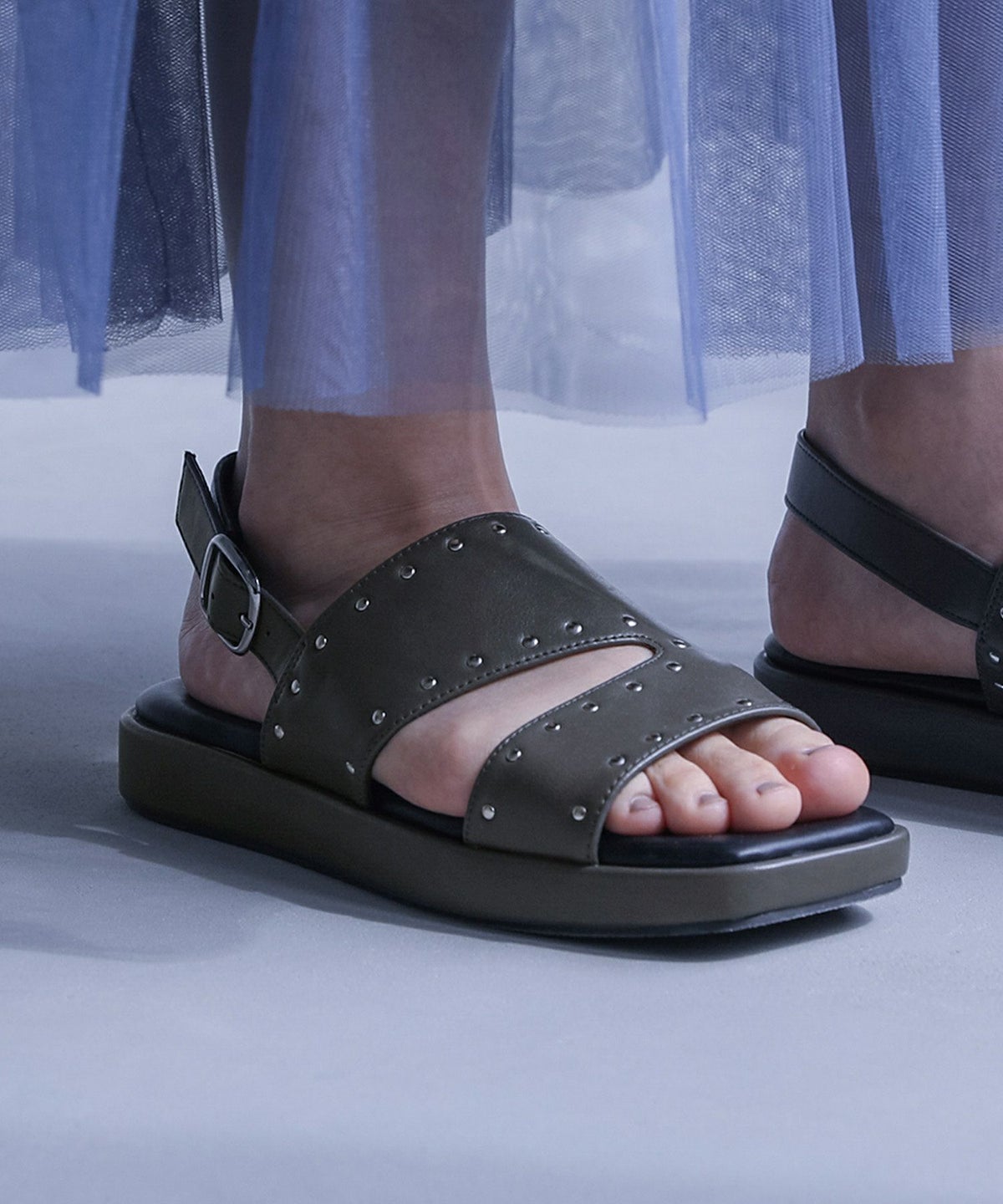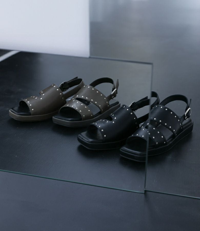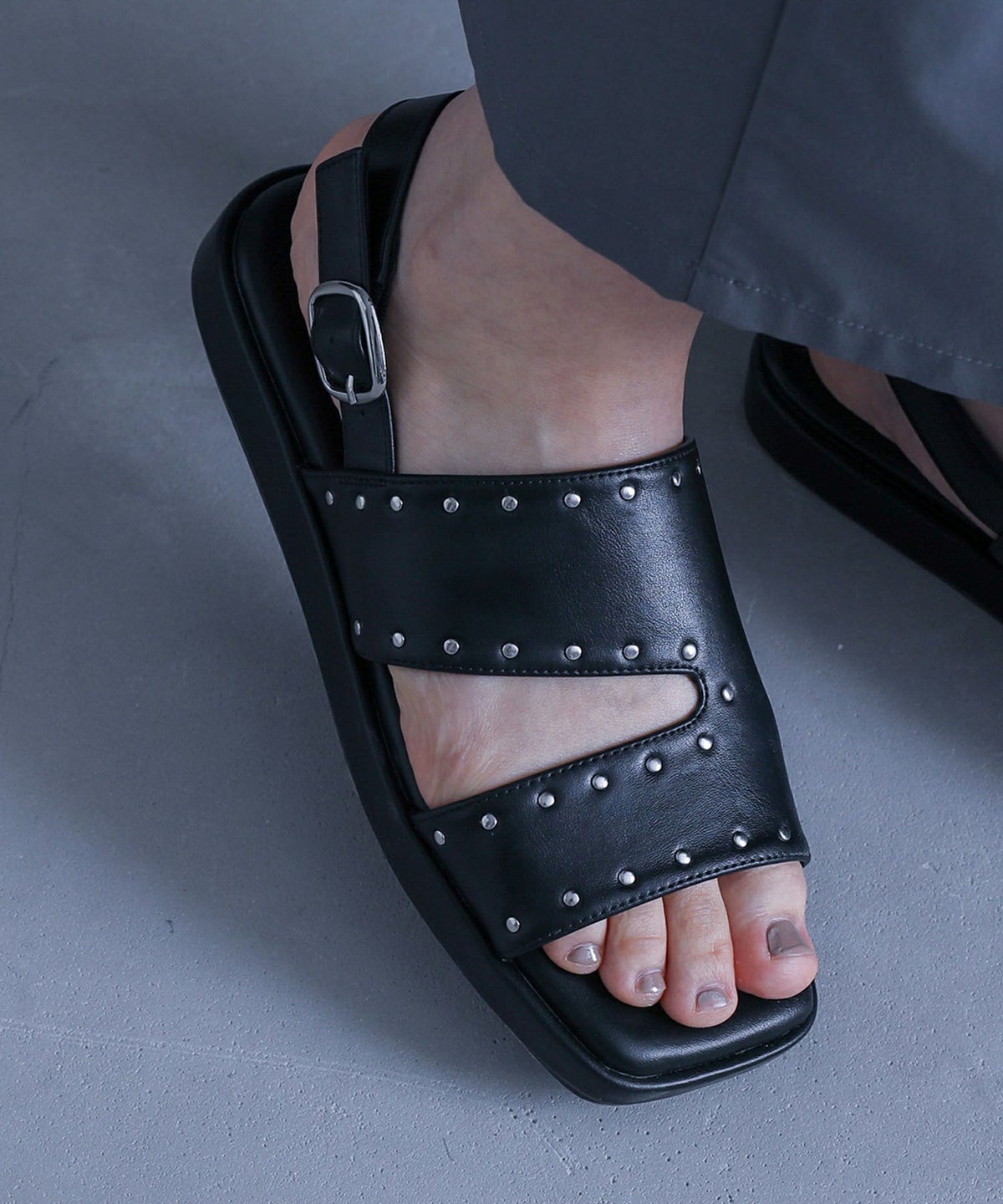 他の画像を見る 選べるM L LLサイズ展開!サイドにカッティングを施したスクエアトゥサンダル。 『kOhAKUカッティングスタッズサンダル』【メール便不可】【40】 ¥ 6,980 税込 5.00 (1)