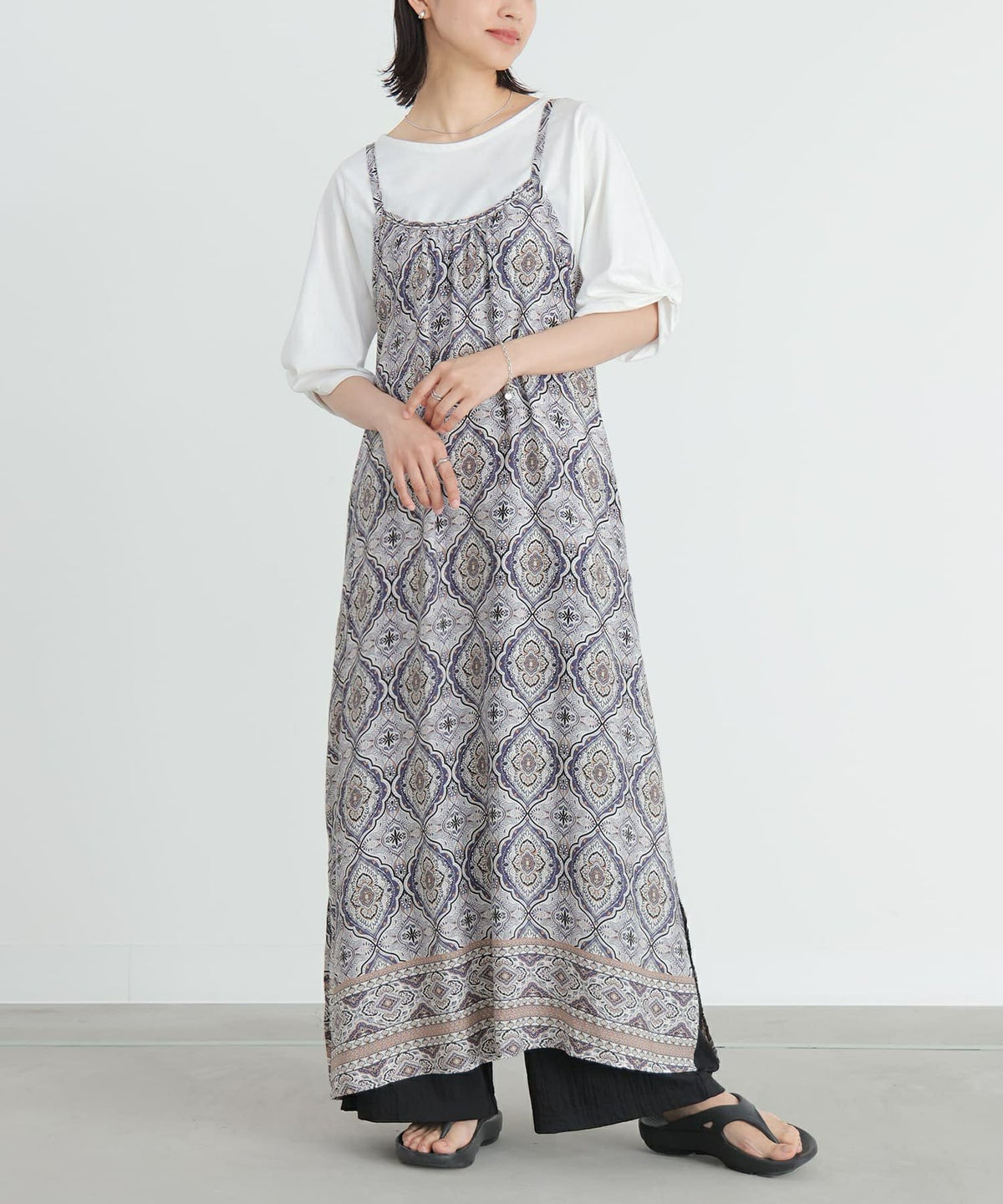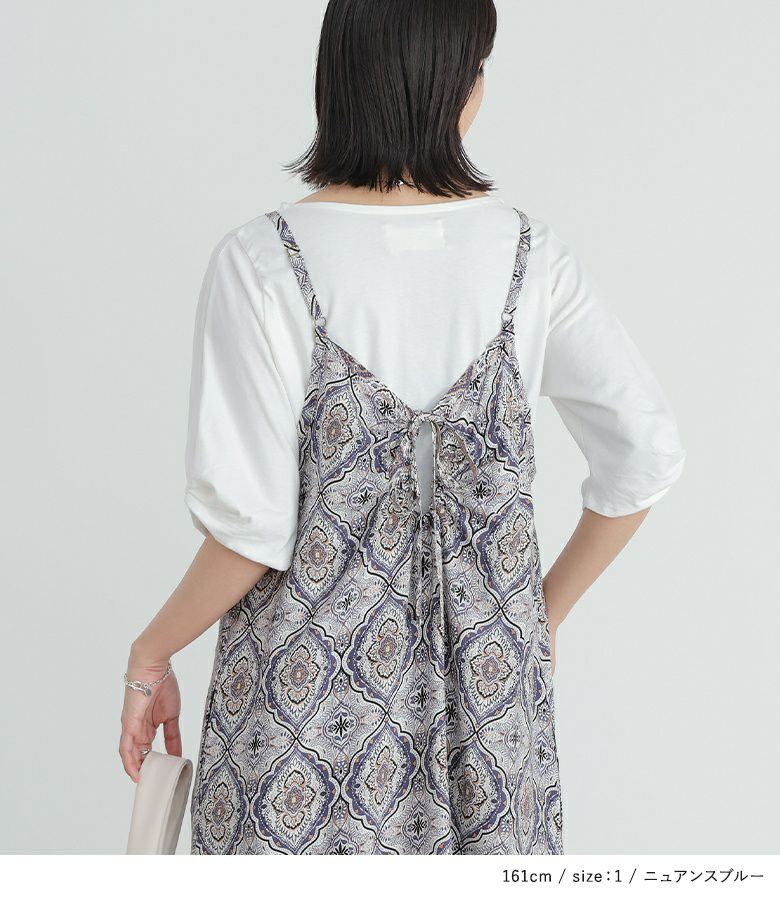 他の画像を見る 【40%OFF】選べるM~3Lサイズ展開!華やか夏コーデになるエスニック柄キャミワンピ。 『n'OrLABELエスニック柄プリントキャミワンピース』※返品交換不可※※メール便可※【5】 定価 ¥ 4,980 のところ ¥ 2,987 税込 4.50 (4)