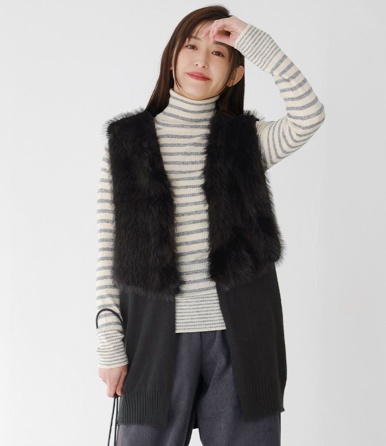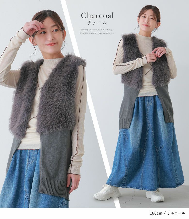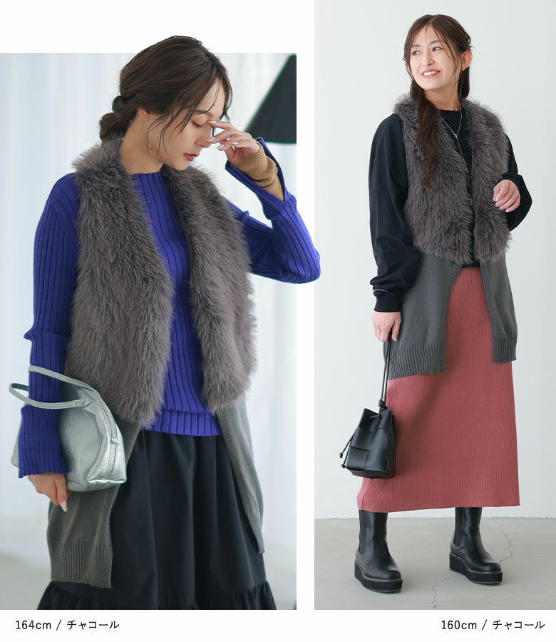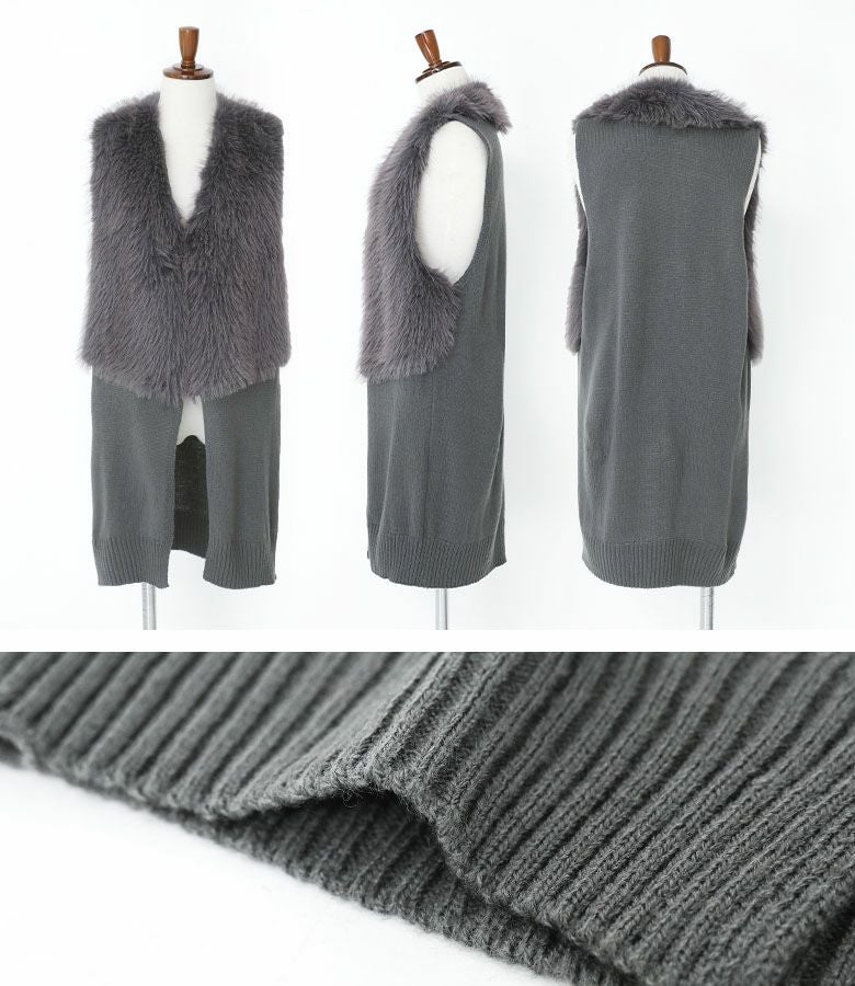 他の画像を見る 期間限定セール★特別SALE開催中!! 『30%OFFセール★OUKA SELECT フェイクファー切り替えロングニットジレ』※返品交換不可※【メール便不可】【20】 定価 ¥ 8,980 のところ ¥ 6,285 税込 (0)