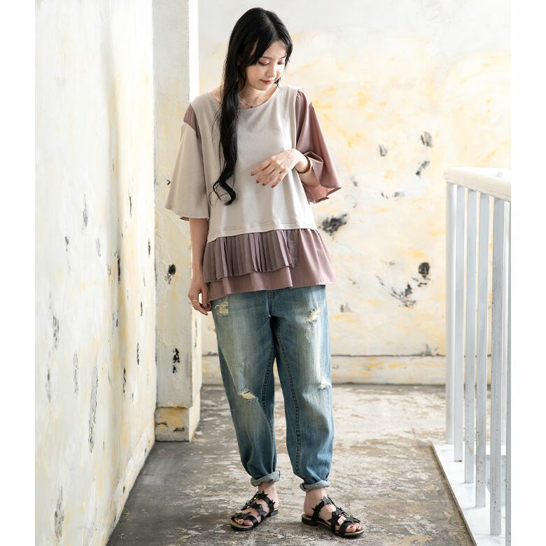 他の画像を見る 選べるM~3Lサイズ展開!1枚でお洒落が決まる異素材カットワンピ♪ 『n'OrLABEL配色シフォン切替カットソーワンピース』※メール便可※【10】 ¥ 4,980 税込 4.67 (3)