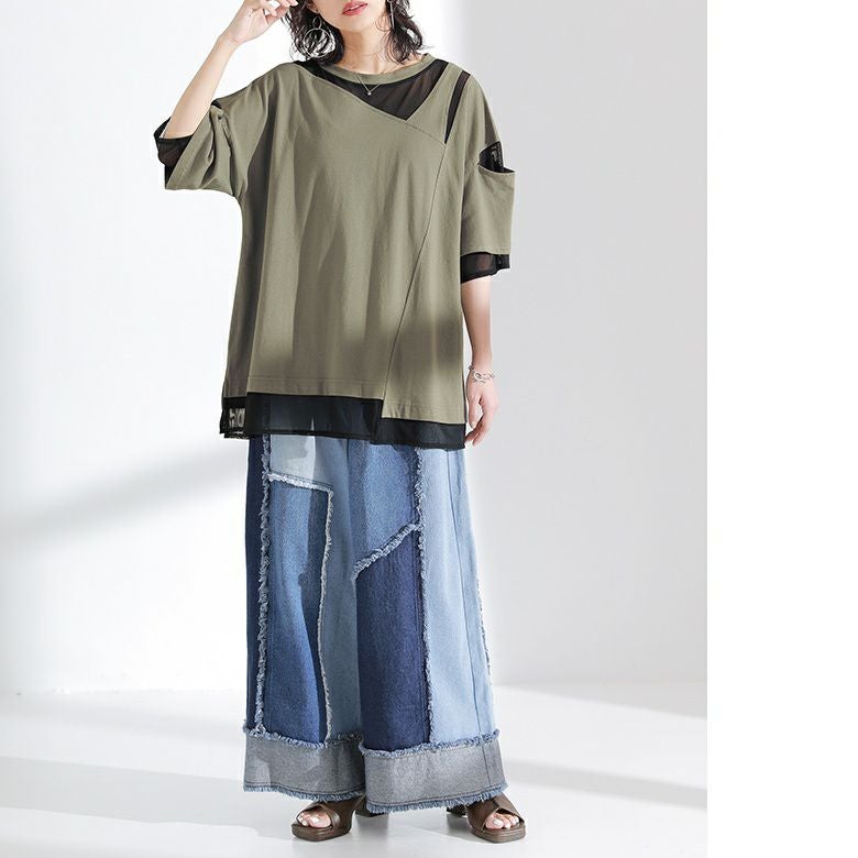 他の画像を見る 【60%OFF】堀出し物いっぱい★感謝価格item!!配色×メローデザインが映える大人めシアートップス♪ 『n'OrLABEL前後2wayメッシュシアー配色トップス』※返品交換不可※※メール便可※【5】 定価 ¥ 2,590 のところ ¥ 1,036 税込 4.86 (7)